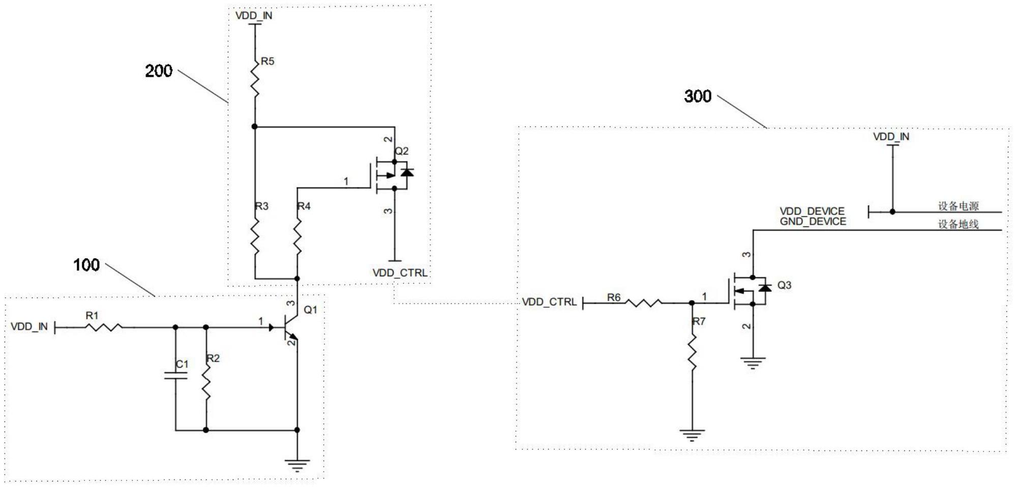 本申请提供一种热插拔延时供电电路,包括设置于用电部分上的充电延时单元、一级控制单元以及二级控制单元,且充电延时单元与用电部分的电连接端同步与电源部分的电连接端电接触或分离,通过充电延时单元延时触发一级控制单元导通,一级控制单元控制二级控制单元导通,二级控制单元控制用电部分的地线与电源部分的地线相导通,即延时电路、低压控制电路、高压控制电路以及用电部分回路依次控制导通,从而实现延时供电,在延时时间内,用电部分与电源部分的金属触点可充分接触,保证金属接触面,避免产生电火花,保证设备使用寿命。