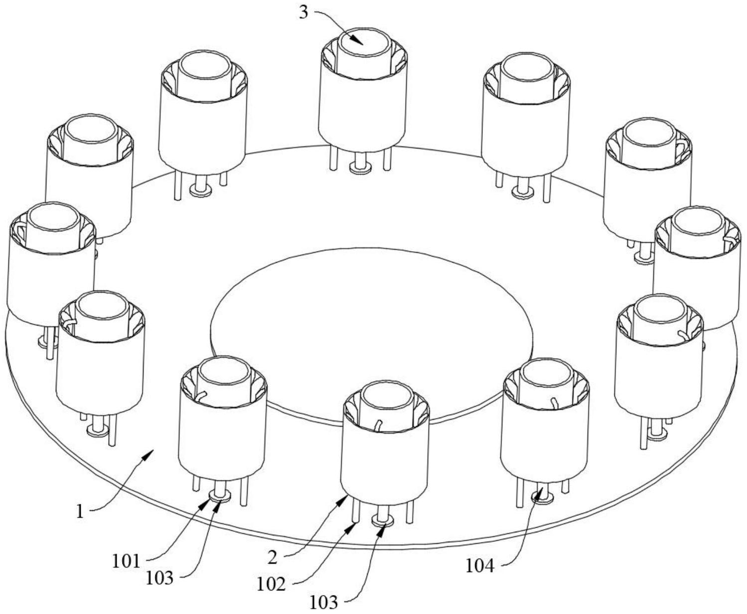 本实用新型公开了一种用于制备玻璃器皿的固定机构,涉及玻璃器皿技术领域。本实用新型包括操作平台和固定机构;操作平台上阵列有固定机构;操作平台上开设有安装槽和固定盲孔;安装槽内均固定有微型电机;固定机构包括放置盘和辅助限位筒;放置盘下表面固定有限位导柱;限位导柱周侧面与固定盲孔内壁固定;辅助限位筒内底面开设有螺纹贯穿孔;螺纹贯穿孔与微型电机的输出轴螺纹连接;辅助限位筒内底面开设有限位孔;限位孔内壁与限位导柱滑动配合。本实用新型通过操作平台和固定机构的作用,将玻璃器皿水平移动至放置盘上之后,辅助限位筒上升至一定高度,对玻璃器皿周侧面有一定环绕限制作用,达到对玻璃器皿的保护作用。