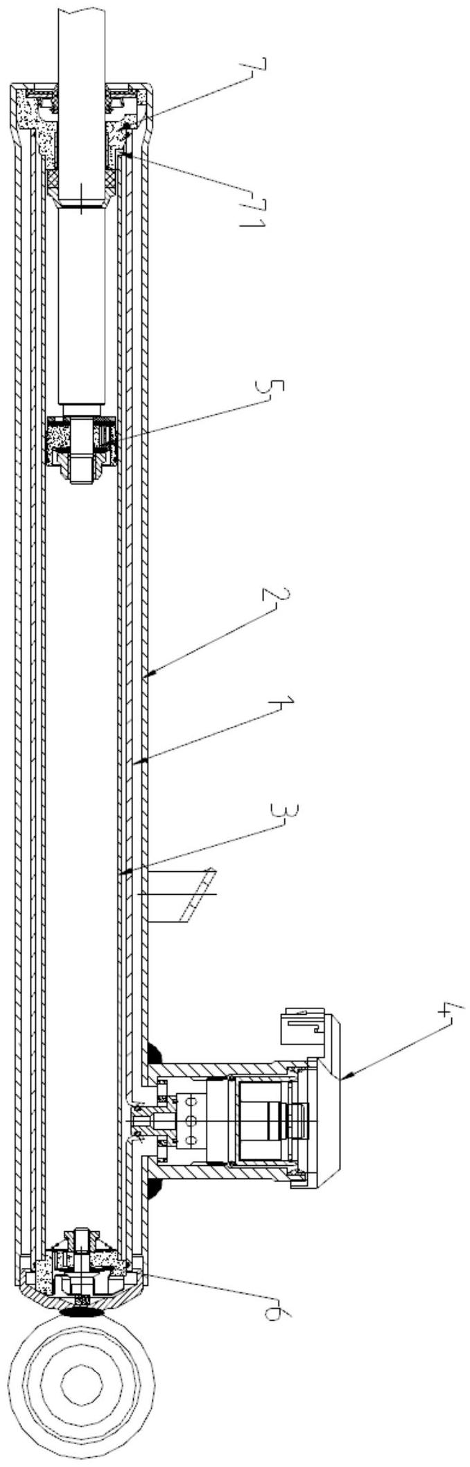 本实用新型提供一种电控减振器的新型导油缸及电控减振器及车辆,涉及减振器技术领域,电控减振器的新型导油缸包括缸体,缸体为直管式,内部具有贯穿的空腔,在缸体上开设有电磁阀安装孔,电磁阀安装孔为凸出式设置,缸体的内壁上设置有密封圈安装槽,密封圈安装槽至少设置两个,分别设置在缸体左右侧的内壁上,缸体用于安装在减振器中导油缸由原较为复杂的管材多道整形改为直管式,无需对导油缸进行缩管,将原复杂的异形导油缸优化为直管式,大幅降低了导油缸的制造难度和成本,导油缸的两端分别装配在底阀阀座和导向器上,密封圈在装配和使用时无脱出风险,取消密封圈挡片,在优化密封性能的基础上减少了零件需求。