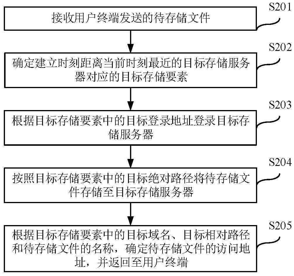 本申请涉及一种存储方法及存储系统,涉及计算机技术领域。方法应用于存储系统中的应用服务器,存储系统还包括若干存储服务器,存储服务器设置有文件存储目录,应用服务器中存储有存储服务器对应的存储要素,方法包括:接收用户终端发送的待存储文件;确定建立时刻距离当前时刻最近的目标存储服务器对应的目标存储要素;根据目标登录地址登录目标存储服务器;按照目标绝对路径将待存储文件存储至目标存储服务器;根据目标域名、目标相对路径和待存储文件的名称,确定待存储文件的访问地址,并返回至用户终端。采用本申请可以在存储服务器存满时,直接在应用服务器中增加与新增存储服务器对应的存储要素,不涉及算法调整,便于存储系统的运行维护。