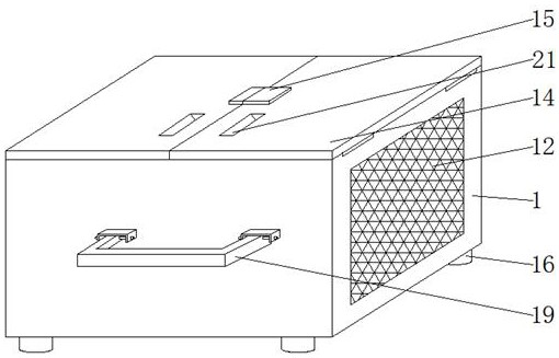 本实用新型公开了一种机器视觉工业控制器,包括壳体,所述壳体内腔的底部铺设有干燥剂,所述壳体的内腔且位于干燥剂的上方固定连接有隔离网,所述隔离网的顶部放置有蓄电池,所述蓄电池两侧的前端和后端均设置有夹持板,所述夹持板远离蓄电池的一端固定连接有弹簧。本实用新型通过壳体、干燥剂、隔离网、蓄电池、夹持板、弹簧、控制器本体、支撑块、连接柱、散热风机、散热孔、第一防尘网、防水透气膜、盖板和指纹锁的配合使用,能够对控制器进行良好的保护,而且需要权限才能进行操作,并且能够高效快速的将控制器工作时产生的热量进行散热,延长了控制器的使用寿命,进而提高了控制器的实用性。