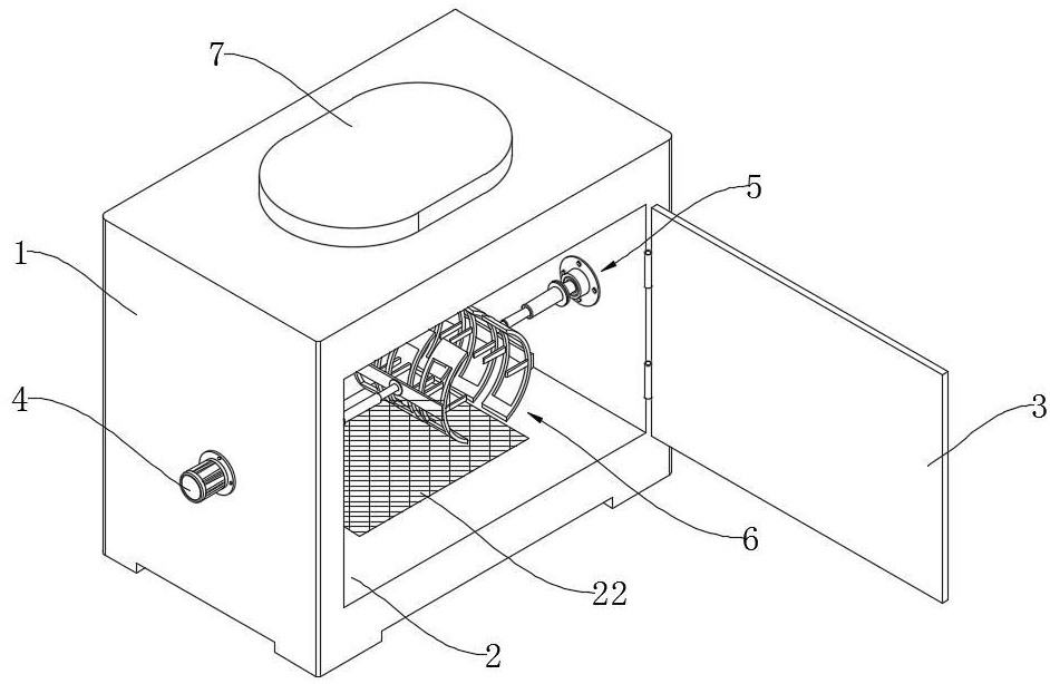 本实用新型公开了一种橡胶轮胎生产用烘干机构,属于橡胶轮胎生产技术领域,包括烘干机箱、批量夹持框架组件、旋转机构,批量夹持框架组件设置在烘干机箱的烘干内腔中,且同时能够批量夹持多个橡胶轮胎同时烘干处理,批量夹持框架组件包括多个弧心相向设置的弧形夹持板,弧心相向设置的两个弧形夹持板能够夹持橡胶轮胎,同列排布的多个弧形夹持板的背面焊接有一个能够将其同列排布的多个弧形夹持板连接在一起以至批量夹持的连接板件,每个弧形夹持板的内壁均开设有以便热封均匀分散的透风口。该橡胶轮胎生产用烘干机构,不仅方便批量烘干橡胶轮胎,同时能够对橡胶轮胎翻转烘干,从而提高其烘干效率。