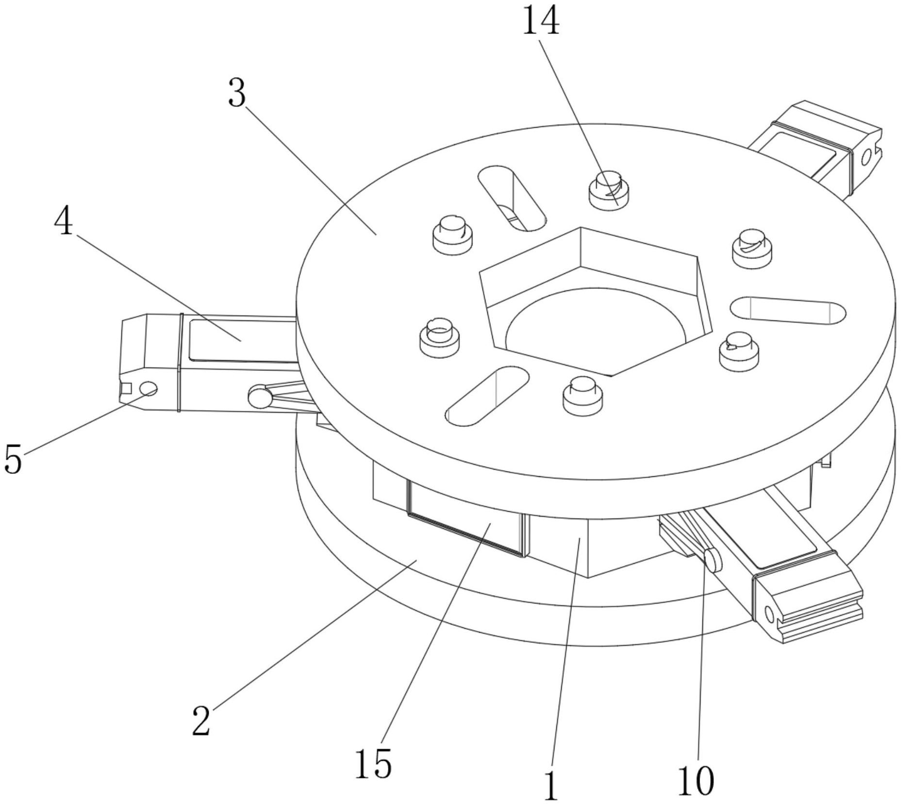 本实用新型提供一种节能工业大风扇轮盘,涉及工业风扇轮盘技术领域,包括本体,所述本体的下端设置有定位板,所述本体的上端设置有固定板,所述本体的侧面设置有叶片连接杆,所述叶片连接杆的侧面固定安装有连接口,移动叶片连接杆,啮合槽a则随着叶片连接杆移动,并将其与本体内表面的啮合槽b对齐,接着向啮合槽b的方向移动叶片连接杆,直至啮合槽a与啮合槽b贴合,弹簧则在叶片连接杆与撑板之间,从而初步固定叶片连接杆,接着人们使用螺栓将叶片连接杆固定在本体上,通过啮合槽a与啮合槽b及撑板,从而加固叶片连接杆与本体之间的连接强度,提高对扇叶的支撑能力,降低风扇在工作时损坏的概率。