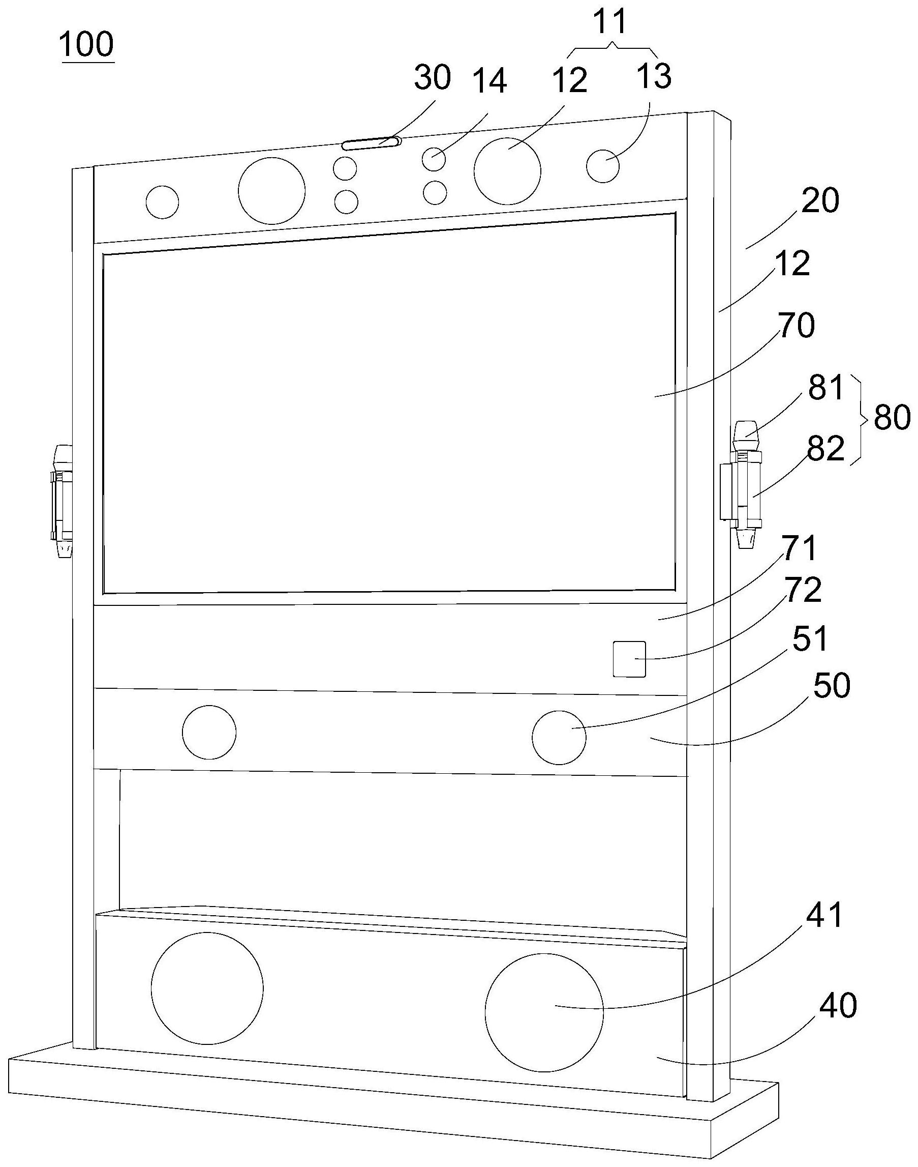 本申请涉及音视频交互设备的技术领域,本申请提供一种一体式音视频交互设备。本申请所提供的一体式音视频交互设备包括:底座,以及设于底座上的支撑框架;所述支撑框架上设置有显示屏和配置多组扬声器的音响系统,分别用于播放视频画面和音频信息;所述显示屏和音响系统连接集成音视频处理功能的电路板,所述电路板包括相互隔离设计的主板模块和效果器;所述主板模块连接所述显示屏的驱动电路,所述效果器连接所述音响系统;所述主板模块集成电视机和点唱机功能,用于同屏幕数字接口驱动所述显示屏显示。本申请所提供的方案有助于达到期望的音效效果。