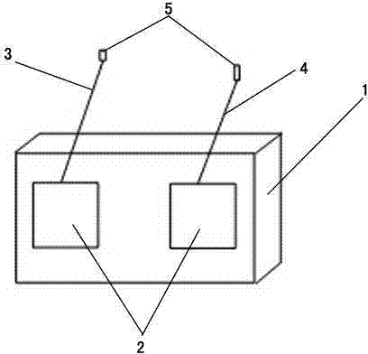本实用新型公开了一种测试组件接线盒用模块,包括模块主体,主体上设有两块与测试仪内部探针相接触的铜片,两块铜片分别连接正、负连接线,正、负连接线上设有与接线盒上连接线相连接的接线头。本实用新型测试模块主要采用了替代的构思,从而大大降低了测试时间,提高了工作效率。