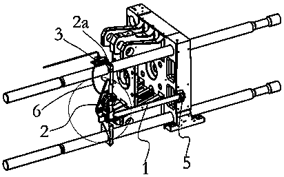 本实用新型公开了一种注塑机动模板防抖动夹紧装置,沿注塑机拉杆长度方向设置有制动板,制动板固定链接至动模板外周;在注塑机拉杆上还固定设有支架板,在支架板上固定设有制动器,并且制动板穿设于制动器的两摩擦片之间,在系统电气控制下,制动器促使摩檫片向内收缩并将制动板夹紧,使动模板固定;本实用新型的有益效果是:通过制动器与制动板的配合,能够有效的防止开模过程中动模板的抖动;其结构上简单,拆装便利。