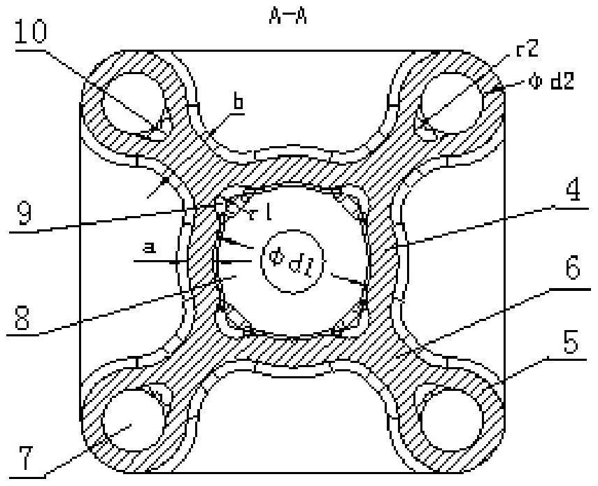 本实用新型涉及一种模板铸件,涉及注射设备的领域,其包括相互平行的第一模板和第二模板、连接第一模板中部和第二模板中部的第一连接部、对应连接第一模板端角和第二模板端角的第二连接部、以及连接第一连接部和第二连接部的筋部;第一连接部中部设有穿过第一模板和第二模板的喷嘴孔,喷嘴孔靠近筋部的内壁设有第一半圆孔;第二连接部中部设有穿过第一模板和第二模板的拉杆孔,拉杆孔靠近筋部的内壁设有第二半圆孔。本实用新型具有减少铸件缺陷、提高铸件的质量、降低铸件的重量和降低成本的效果。