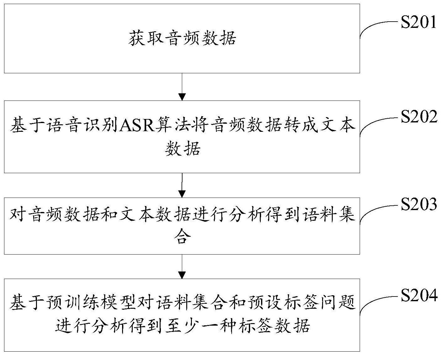 本申请实施例公开了一种用户标签挖掘方法、装置、存储介质及电子设备,属于数据处理领域。方法包括:服务器获取音频数据,基于语音识别ASR算法将音频数据转成文本数据,对音频数据和文本数据进行分析得到语料集合,语料集合中包括角色数据、上下文逻辑文本数据,基于预训练模型对语料集合和预设标签问题进行分析得到至少一种用户的标签数据,通过此种方式可精确的定位用户标签的位置并得到更全面的用户标签,且上述采集用户标签的方式可移植性强。