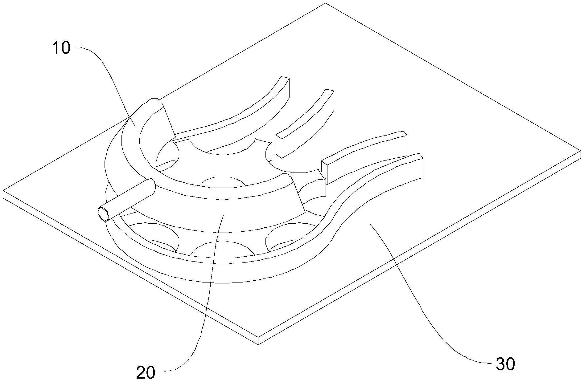 本实用新型涉及灌装设备,提供了一种气体保护装置,包括水平设置且两端封口的气管,设于所述气管下侧的排气孔,一对分别设于所述气管两侧的挡板,与所述气管导通连接的连接管,以及与所述连接管导通连接的供气装置;所述挡板的长度方向平行于所述气管的长度方向;一对所述挡板上侧均与所述气管外壁固定连接,一对所述挡板呈倒V字形。本实用新型的气体保护装置,能够有效地保护惰性气体,避免其大量地被流动的空气带走。