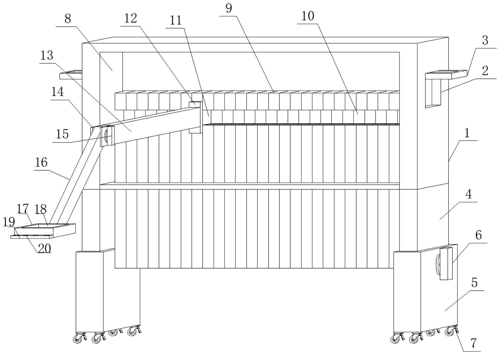 本发明公开了一种医疗保健用艾灸支架,涉及医疗保健领域,包括支撑主板,所述支撑主板的两侧边对称开设有收纳槽,所述收纳槽的内侧边卡接有把手杆,所述支撑主板的底面垂直向下插接有延伸立杆,所述延伸立杆的底端竖直向套接有底套杆,所述底套杆的侧边螺纹连接有紧固螺杆,所述底套杆的底端螺栓连接有移动轮,所述支撑主板的一侧边水平开设有活动槽,所述活动槽的内侧边竖直向插接有排条杆,所述排条杆的侧边水平开设有路径槽,所述路径槽的内侧边水平插接有插接块。本发明装置设计结构简单操作方便,在采用了可调节式路径使得可以更加符合多变性的治疗环境,同时多向的调节使得在进行使用时更加的合理高效。