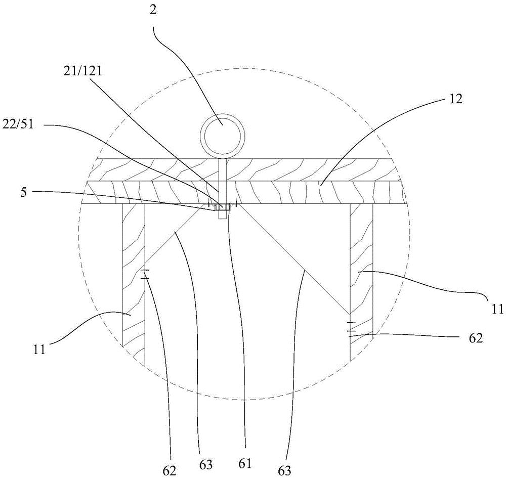 本实用新型公开一种预制木墙及木屋结构,其中,预制木墙包括墙体及吊装结构,其中,墙体包括多个呈上下向延伸设置的墙骨柱,多个墙骨柱沿左右向间隔设置,多个墙骨柱上端设有左右向延伸的顶梁板,顶梁板的上端面具有一对应在两个相邻墙骨柱之间形成的安装区域,在安装区域内,顶梁板贯设有第一过孔,吊装结构包括上下向延伸的吊装螺杆及设于吊装螺杆头部的锁紧螺母,吊装螺杆的头部自顶梁板的第一过孔向下穿设,并被锁紧螺母固定至顶梁板的下端。通过将吊装结构设于顶梁板上,木墙在制作过程中进行转序、运输、现场吊装时,只需要吊装连接吊装结构,即可实现吊装预制木墙,操作简单、便捷,提高了生产效率。