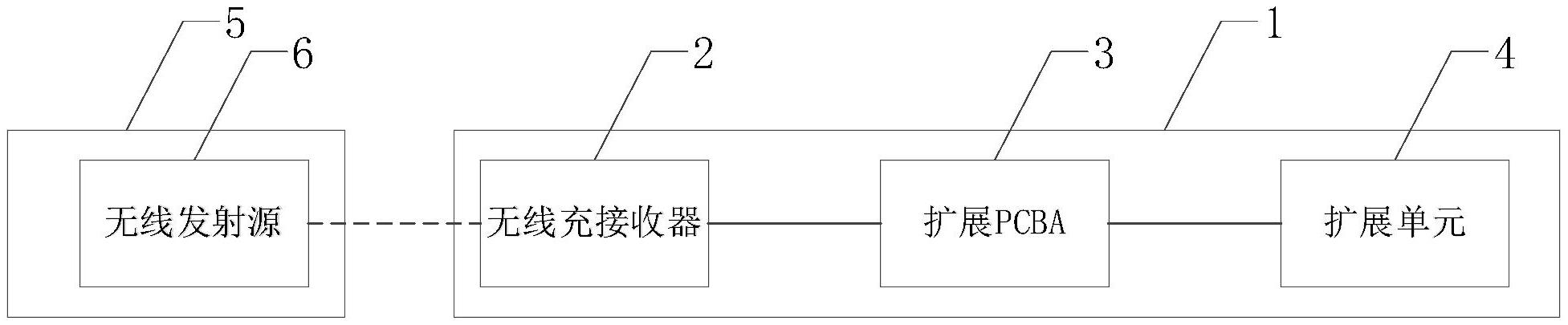 本实用新型公开了一种平板电脑的保护壳和无线充电系统,适用于平板电脑配件领域。平板电脑容置于保护壳的容置平板电脑的凹槽内;无线充接收器用于接收平板电脑内的无线发射源发出的能量,其中,无线充接收器与无线发射源通过磁吸连接;无线充接收器与扩展PCBA连接,扩展PCBA与扩展单元连接。该保护壳将周边产品(扩展单元)对应的外部电源全部需要靠平板电脑本身进行充电,利用平板电脑的无线发射源发出的能量,由保护壳内的无线充接收器接收,再将接收到的能量转换为扩展单元需要的供电能量以便于扩展单元进行正常工作。无需单独插入外接电源,减少了外部电源给扩展单元进行充电以减少外部供电需求,使得整个应用产品使用更加便捷。