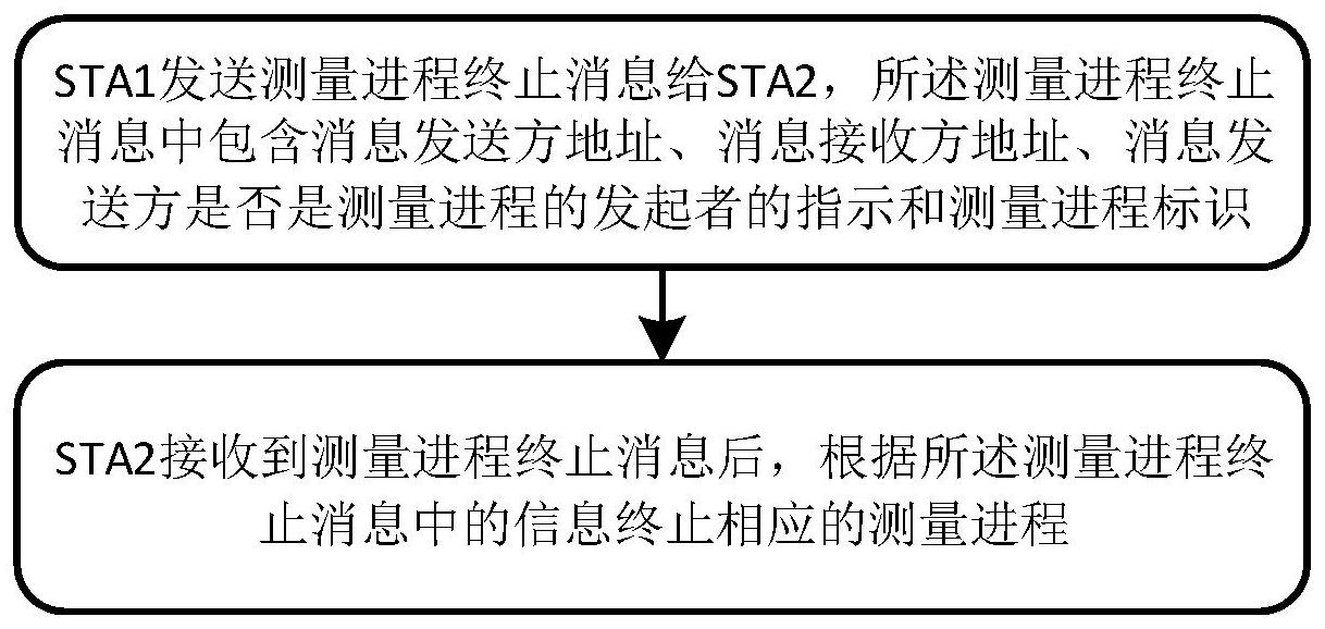 本发明公开了一种终止无线感知测量进程的方法、装置、设备及存储介质。该方法包括:第一设备发送测量进程终止消息给第二设备,所述测量进程终止消息中包含消息发送方地址、消息接收方地址、消息发送方是否是无线感知发起者的指示和测量进程标识;第二设备接收到测量进程终止消息后,根据测量进程终止消息中的信息终止相应的测量进程。本发明提供一种更精简的消息架构,能准确的指示需要终止的测量进程,同时不会造成消息体量大,避免了对宝贵的无线资源的浪费,并避免了误包率的提升。
