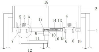 本实用新型公开了一种基于洗车机使用时自动加料的设备,涉及洗车机技术领域,针对洗车机工作时,由于洗车机长时间工作内部料消耗快,需要人工调料加料,由于人工调料加料速度慢,耗时长,效率低的问题,现提出如下方案,所述支撑架的顶部内部固定有料箱,所述料箱的底部内部对称固定有弹簧架,所述弹簧架的顶部内部固定有弹簧,所述弹簧的底部固定有橡胶防漏垫,所述橡胶防漏垫的底部固定有橡胶圈板,所述橡胶圈板的底部固定有第一水管,所述第一水管的两侧开设有漏水口,所述第一水管的外部套设有橡胶圈。本实用新型自动化运行,自动根据配比调料加料,速度快,耗时短,效率大大提高,减少人工介入,节约人工资源和成本。