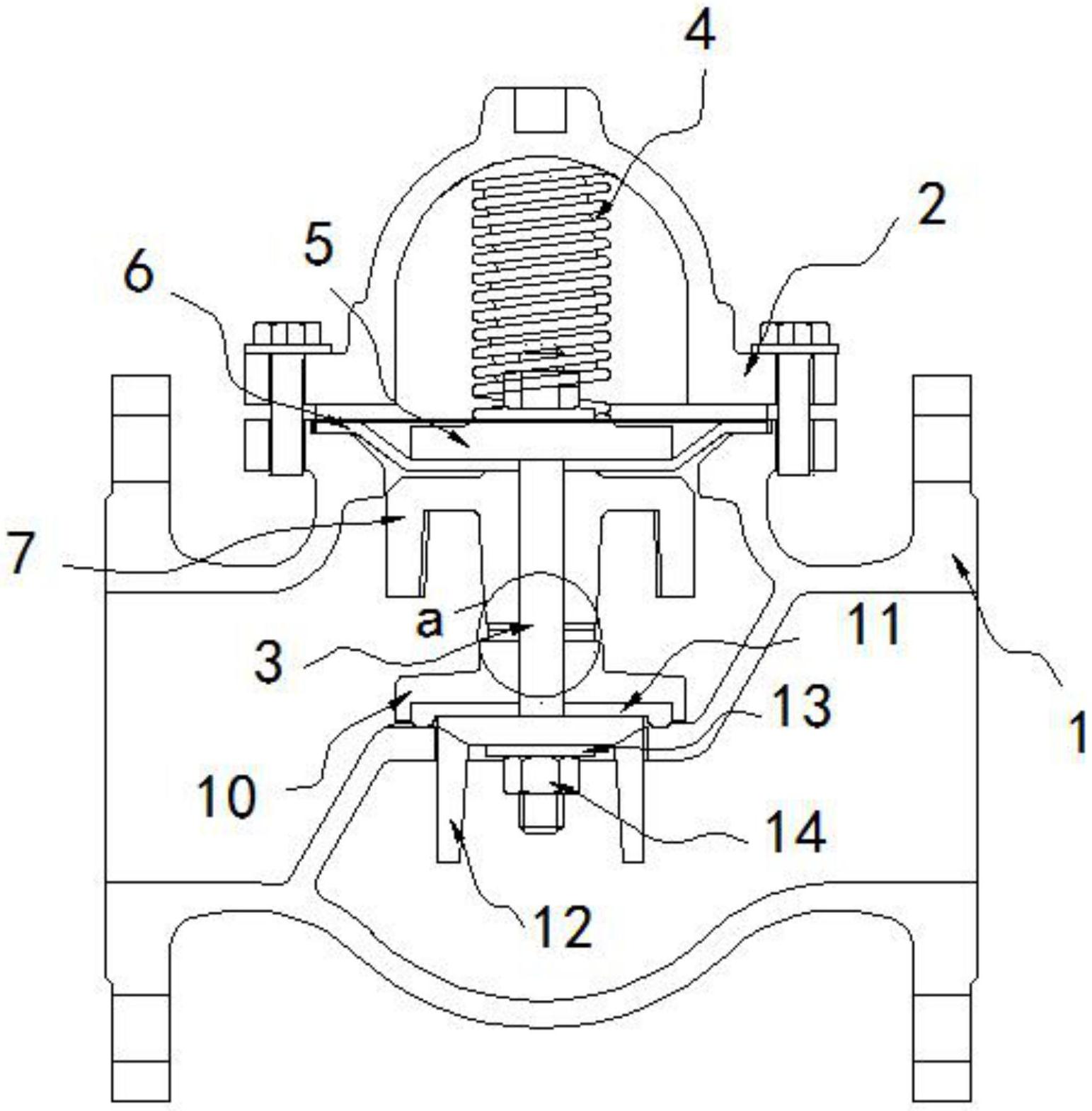本实用新型公开了一种一体式水利阀铜配件结构,包括阀体、阀盖和阀杆;阀盖,设置在所述阀体的上方,且阀盖的内部设置有阀杆;还包括:弯头和转接头,均固定在所述阀体的前侧,且弯头的上方设置有光面钢管,并且光面钢管与弯头之间通过钢球阀进行连接,而且转接头与光面钢管的上端进行连接;上导向压盘,设置在所述阀体的内部,且阀体的内部滑动卡合有下导向压盘;阀瓣,设置在所述阀杆的外侧。该一体式水利阀铜配件结构,水利阀铜配件由组装结构更改为一体式结构,进而减少连接口的数量,减少过程漏点,提高产品质量,通过一体化的设置减少铜配件的安装时间,提高工作效率,通过内部的铜球阀的启闭开合调节水的流向。