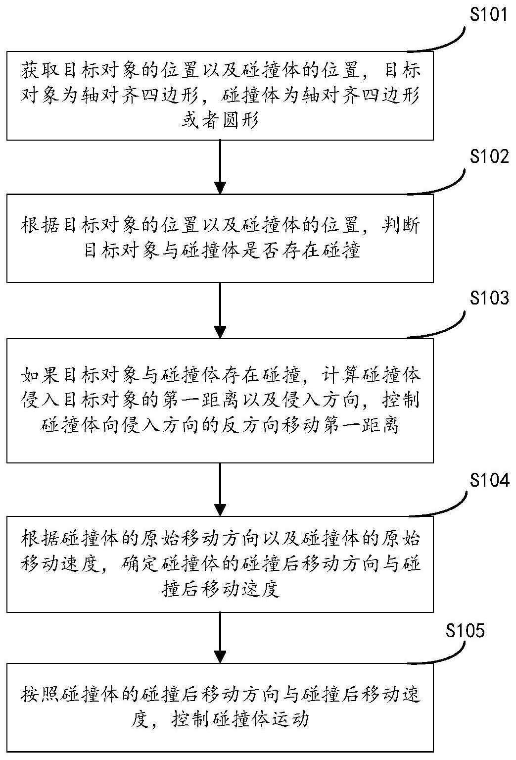 本申请实施例公开了一种实现碰撞处理的方法及装置,本申请实施例提供的实现碰撞处理的方法通过对目标对象和碰撞体的位置的获取和判断,将发生碰撞的碰撞体先进行位置的重定位,并根据原始移动方向和原始移动速度确定碰撞后的移动方向和移动速度,控制碰撞体按照碰撞后的移动方向和移动速度运动。由此可见,本申请实施例提供的方法根据碰撞体原始移动方向和原始移动速度确定碰撞后的移动方向和移动速度,可以在检测到碰撞后对碰撞体的移动进行正确的调整,提高碰撞体在碰撞后的运动的准确性。