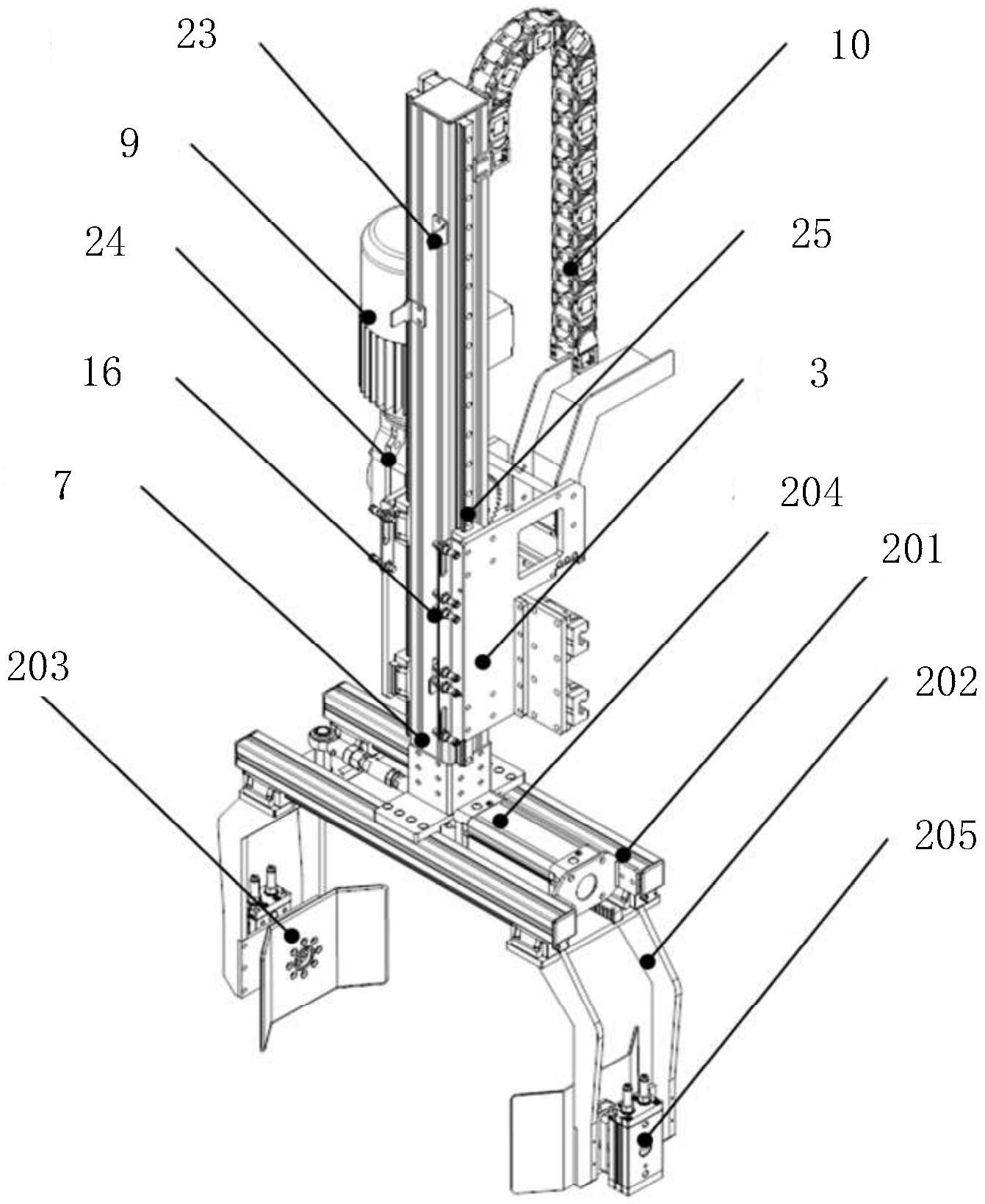 本实用新型提供了一种机械手及自动搬运桁架机器人,包括:升降梁、导轨梁、夹抱手臂、夹抱旋转板、第一驱动机构以及第二驱动机构;所述导轨梁设置在所述升降梁的末端,所述导轨梁上远离所述升降梁的侧面上形成滑轨;两个所述夹抱手臂设置在所述滑轨上,所述第一驱动机构,用于驱动所述夹抱手臂进行相向或相背运动以进行夹抱或释放操作;两个所述夹抱手臂相对的侧面上设置有夹抱旋转板,所述第二驱动机构,用于驱动所述夹抱旋转板转动以对夹抱的目标物体进行旋转。本实用新型能够在第二驱动机构的驱动下将对夹抱的目标物体旋转90°,实现目标物体在线转向,便于目标物体的做姿态摆放。