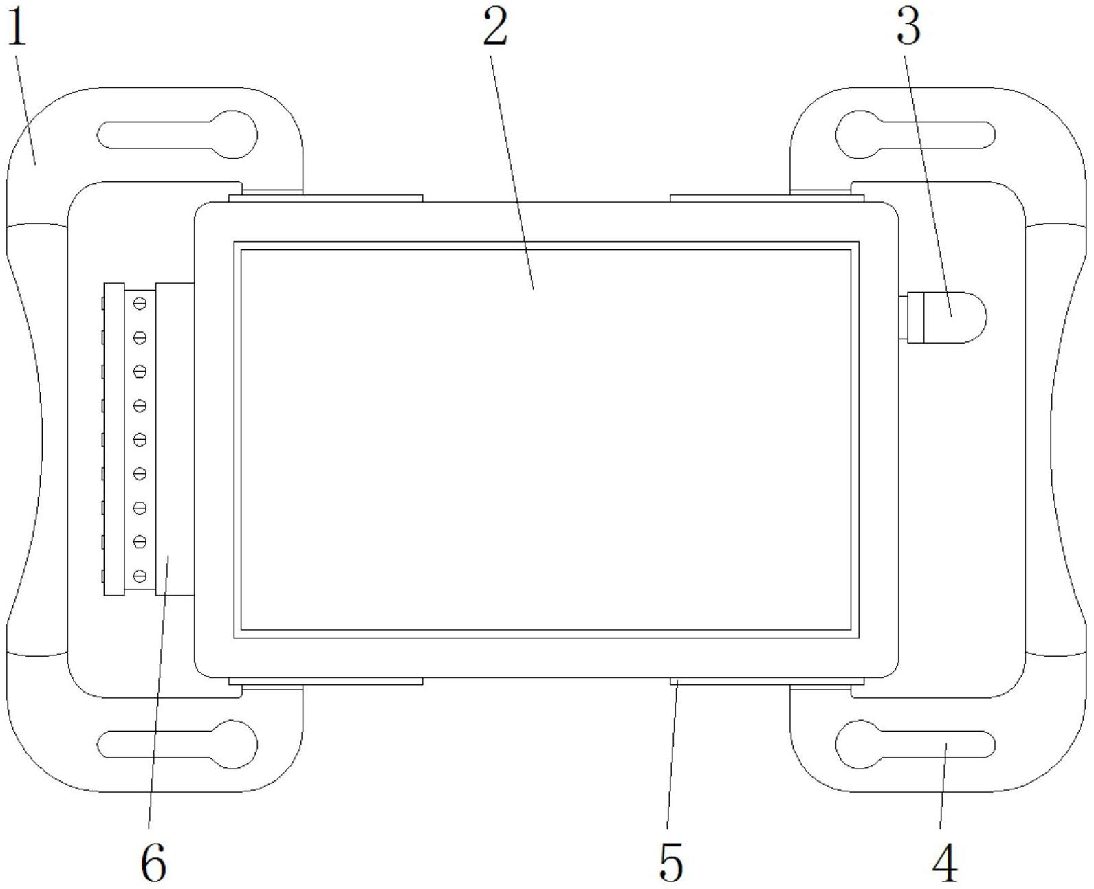 本实用新型公开了一种基于LORA的DTU装置,包括主体、指示灯和插头,所述主体的一侧固定连接有插头,所述主体的另一侧固定连接有指示灯,所述主体顶端和底端的两侧均设置有第一滑块,所述第一滑块的外侧均活动连接有把手,且把手的顶端和底端均设置有固定孔,所述主体的一端均匀设置有散热孔,且散热孔的内部均固定连接有过滤网,所述散热孔的顶端均固定连接有挡板,所述主体一端的两侧均设置有防护结构。本实用新型通过在主体的一端均匀设置有散热孔,主体工作过程中产生的热量会通过散热孔进行散热,过滤网对空气进行过滤,防止灰尘进入,更好的进行散热,挡板对散热孔进行遮挡,不会影响散热工作,却可以起到一定的防水效果。