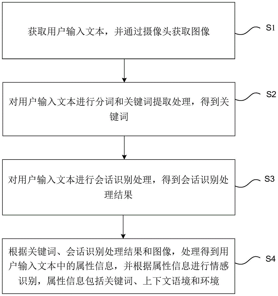 本发明提供的基于计算机自动识别用户情感的方法及装置,方法为:获取用户输入文本,并通过摄像头获取图像;对用户输入文本进行分词和关键词提取处理,得到关键词;对用户输入文本进行会话识别处理,得到会话识别处理结果;根据关键词、会话识别处理结果和图像,处理得到用户输入文本中的属性信息,并根据属性信息进行情感识别,属性信息包括关键词、上下文语境和环境。本发明通过关键词结合上下文及环境进行情感识别,克服口语化、短文本带来的分类困难,实现精准分类,可以实现细粒度情感识别。