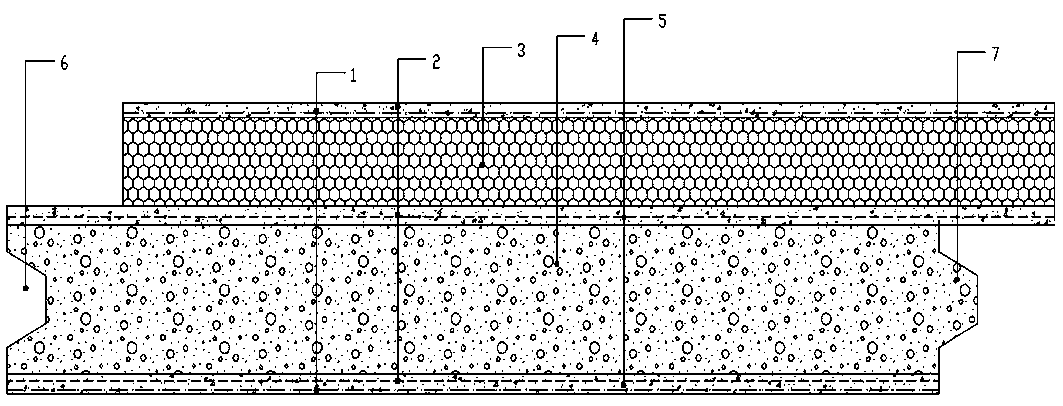 本实用新型涉及一种非承重保温维护一体化外墙板。结构部分是由上下面层和中间的芯层组成,面层材料为硅酸盐或普通硅酸盐水泥和建筑用砂以及有机高分子聚合物按照一定比例混合经过微发泡工艺制作的聚合物水泥混凝土,芯层为聚苯颗粒轻骨料聚合物水泥混凝土;保温部分由石墨聚苯板和聚合物水泥混凝土保护层两部分组成,其中混凝土保护层和结构部分的皮料为同材质,结构部分和保温部分是通过在混凝土面层料中掺入高分子聚合物实现良好的结合效果,在板材结构部分的上下面层当中嵌入冷拔低碳钢丝网加强板材的整体性能,且外露面层再嵌入耐碱玻璃纤维网格布提高面层的抗裂性能,在保温材料的保护层中同样嵌入耐碱玻璃纤维网格布提高其抗裂性能。