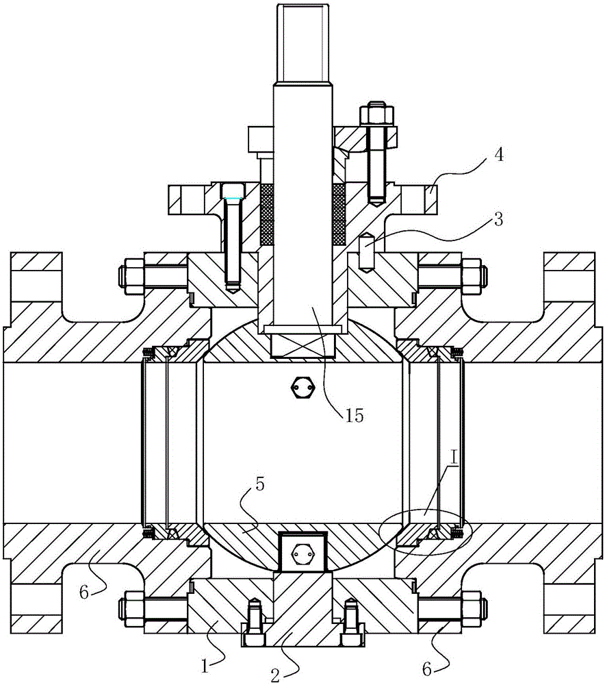 本实用新型公开了一种耐磨球阀,包括阀体组合,所述阀体组合包括中阀体,所述中阀体两侧分别固定安装有侧阀体;阀杆一端伸入所述阀体组合内并连接阀球,所述阀杆的另一端为驱动端;所述侧阀体上浮动安装有阀座,所述阀座和所述阀球分别设有相互适配的密封面。本实用新型能够解决阀球因热膨胀出现“抱死”的问题,且具有良好的密封性能。