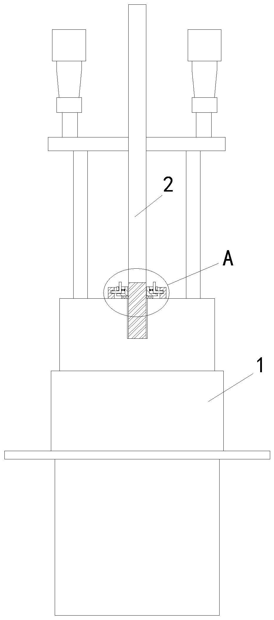 本实用新型公开了一种旋转雾化器冷却水进水管防漏结构,涉及进水管的连接技术领域,包括旋转雾化器本体和设置有丝牙的冷却水进水管,所述冷却水进水管的外部套设有盖帽,所述盖帽与冷却水进水管接触的部分也设置有螺纹,所述盖帽的底部还设置有垫圈,所述垫圈介于盖帽和旋转雾化器本体之间;通过使得盖帽将垫圈紧紧地压在旋转雾化器本体表面,实现对冷却水进水管与旋转雾化器本体连接处的密封,同时盖帽也将实现对垫圈位置的固定,以及进一步实现对冷却水进水管的固定,减少丝牙产生松动、减缓丝牙的磨损,避免冷却水进水管与旋转雾化器本体连接处出现漏水。