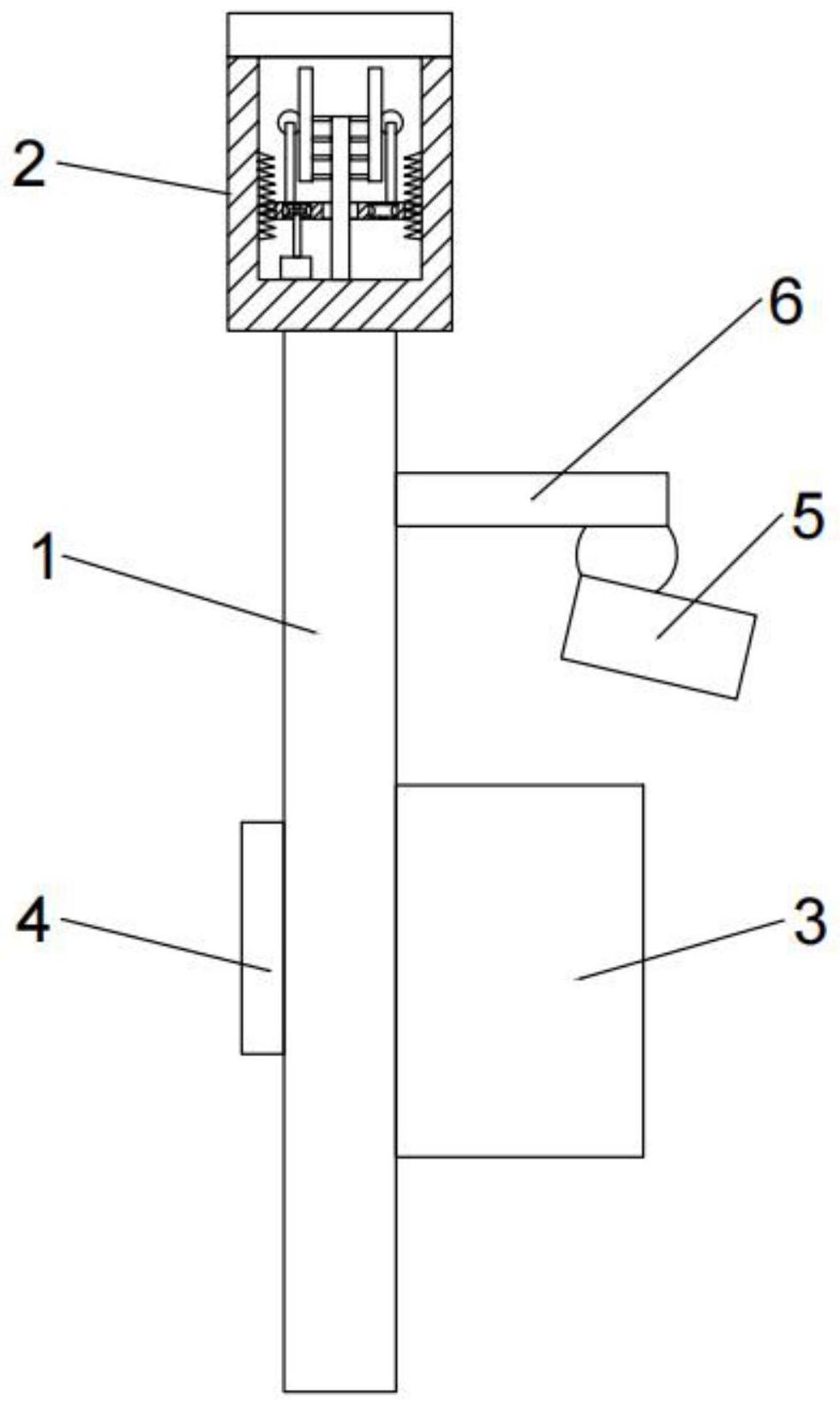 本发明提供了一种基于人脸识别技术的智慧健身步道分析系统,包括柱体、太阳能装置、急救装置、显示屏以及摄影机,太阳能装置连接于柱体顶端,急救装置、显示屏以及摄影机分别连接于侧壁;太阳能装置包括第一机体,第一机体上连接有太阳能板和清洁机构;柱体内设有处理模块、计时模块以及人脸识别模块,计时模块、人脸识别模块、显示屏以及摄影机分别和处理模块电连接。本发明能智能地计算跑步者的排名、利用新能源发电以及能及时对受伤人员进行急救援助。