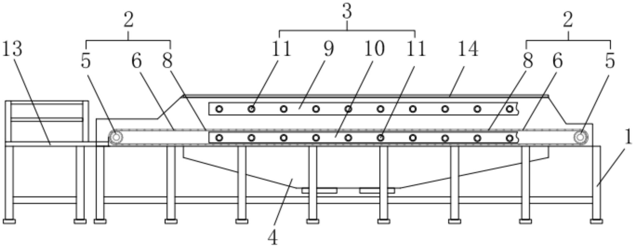 本实用新型涉及厨房设备领域,具体公开了一种集约式中央厨房的供餐选菜装置,包括机架,其特征在于:所述机架上设有用于输送蔬菜的输送带装置和朝输送带装置表面进行喷淋作业的喷淋管道,所述输送带装置的下方设有用于收集清洗蔬菜污水的水槽。机架的靠近输送带装置输送行程的末端设有用于挑选的清洗后蔬菜的选菜架,所述选菜架包括具有沥水口的选菜框,选菜框底部设有支撑架,所述支撑架的底部设有活动轮。选菜架通过选菜框,能够方便快捷的直接从输送带装置上收集清洗好的蔬菜,活动栏板与选菜框的三个侧边通过铰接方式连接,因此使用灵活,选菜效果好。