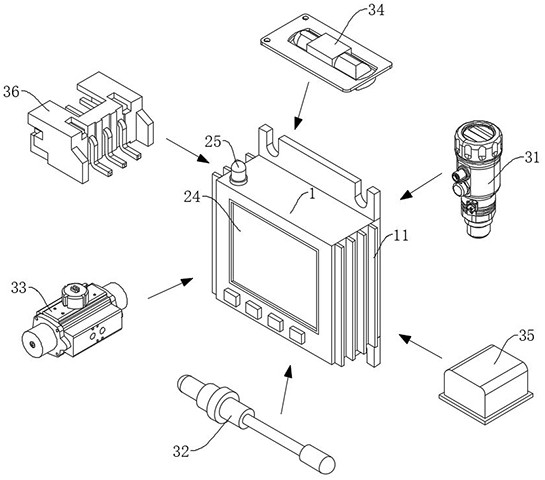 本实用新型属于电梯技术领域,提供了一种旧电梯健康状态监测设备,包括:机壳、监测模块和数据采集模块,所述监测模块设于所述机壳的内部,所述监测模块包括:电路板、数据接收模块和处理器,所述数据接收模块和所述处理器分别与所述电路板连接,所述数据接收模块的输入端与所述数据采集模块连接,所述数据接收模块的输出端与所述处理器的输入端连接。一种旧电梯健康状态监测设备解决了现有的电梯没有配套设置电梯安全监测系统而无法对电梯故障预防的问题。