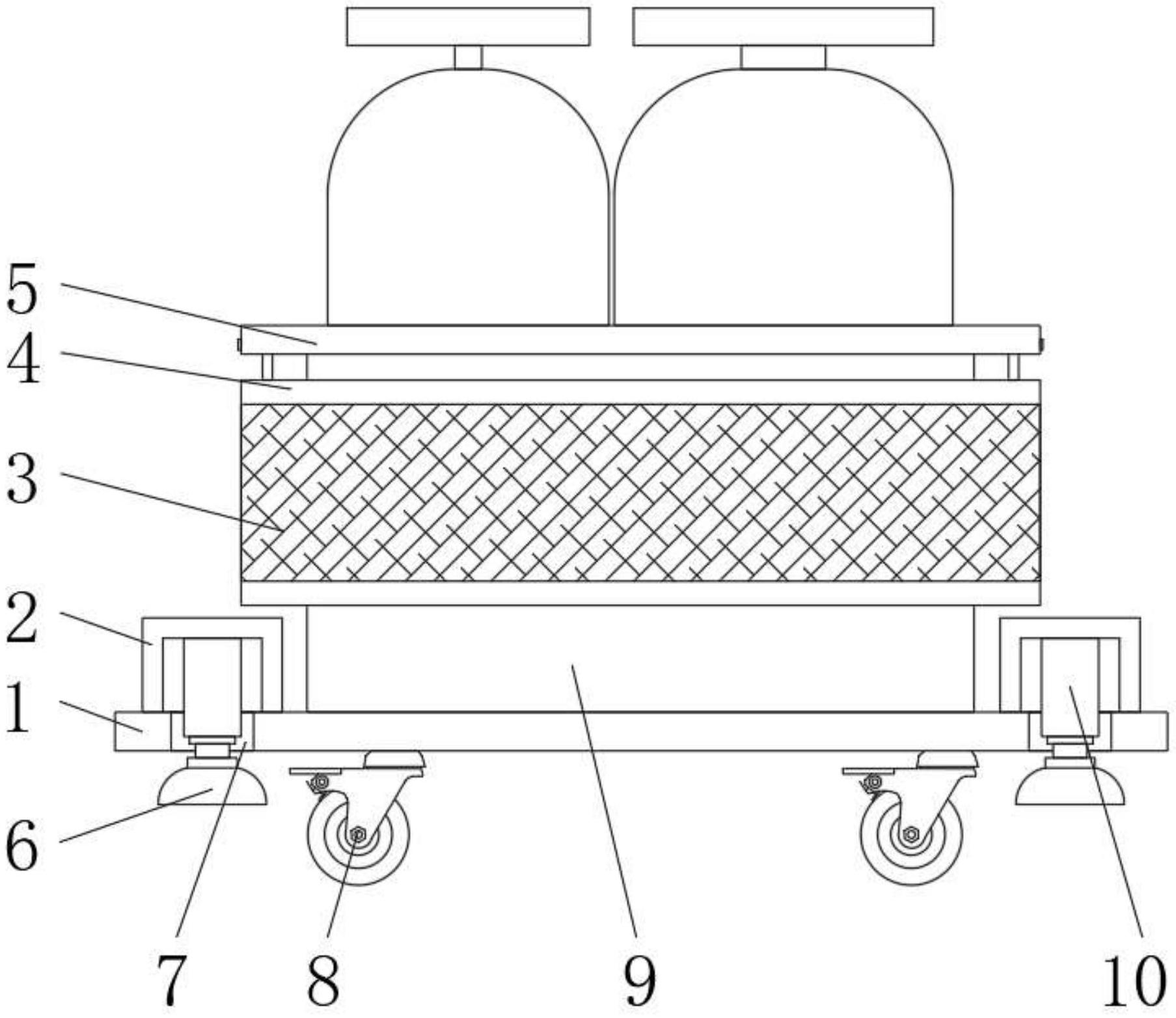 本实用新型公开了节能型双塔式医用分子筛制氧机,包括底板、螺纹杆和固定板,所述底板的顶部固定连接有制氧机本体,所述制氧机本体表面的顶部固定连接有固定框,所述制氧机本体的前侧与背侧均开设有卡槽。本实用新型设置了缓冲垫、缓冲板、缓冲弹簧、阻尼减震器、固定板、卡槽和卡块,通过将卡块卡接于卡槽的内腔中,完成对固定板的固定,通过缓冲垫对撞击进行第一次缓冲,缓冲垫带动缓冲板向内侧移动,缓冲板带动阻尼减震器和固定板发生形变向内侧挤压,对撞击进行第二次缓冲,有效提高对制氧机本体的防护效果,解决了现有的双塔式医用分子筛制氧机在使用时不具备防护的功能,从而不便于人们使用的问题。