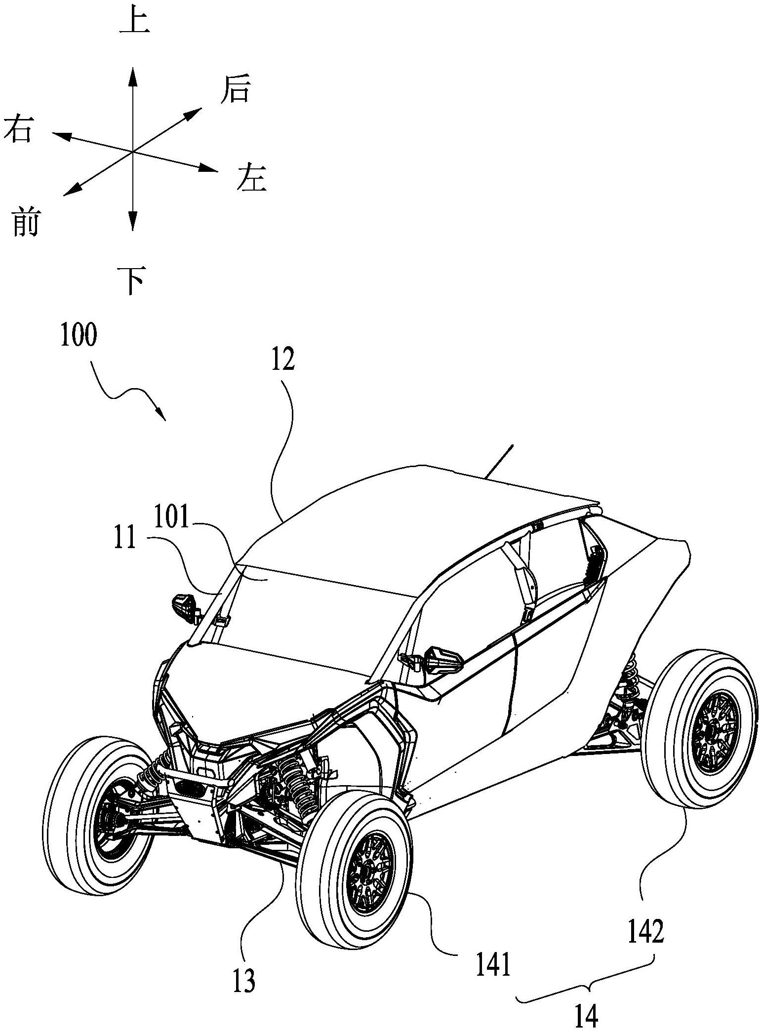 本实用新型提供了一种全地形车,该全地形车包括车架、动力系统、传动系统、行走组件和灯具系统,灯具系统包括设于全地形车尾部的后尾灯,后尾灯包括后转向灯,后转向灯包括后转向灯光源及后转向灯厚壁件,定义一个垂直于全地形车的高度方向的基准平面,后转向灯厚壁件平行于基准平面设置,后转向灯光源平行于基准平面设置,后转向灯厚壁件包括用于改变后转向灯光源的射出光线角度的反射碗,反射碗靠近设于后转向灯光源设置的上方。本实用新型将后尾灯中的后转向灯厚壁件和后转向灯光源平行于基准平面设置,减小后转向灯在全地形车长度方向的占用的空间,也能够在使用较少光源情况下达到较好的点亮效果,改善后尾灯整体的照明和指示效果。