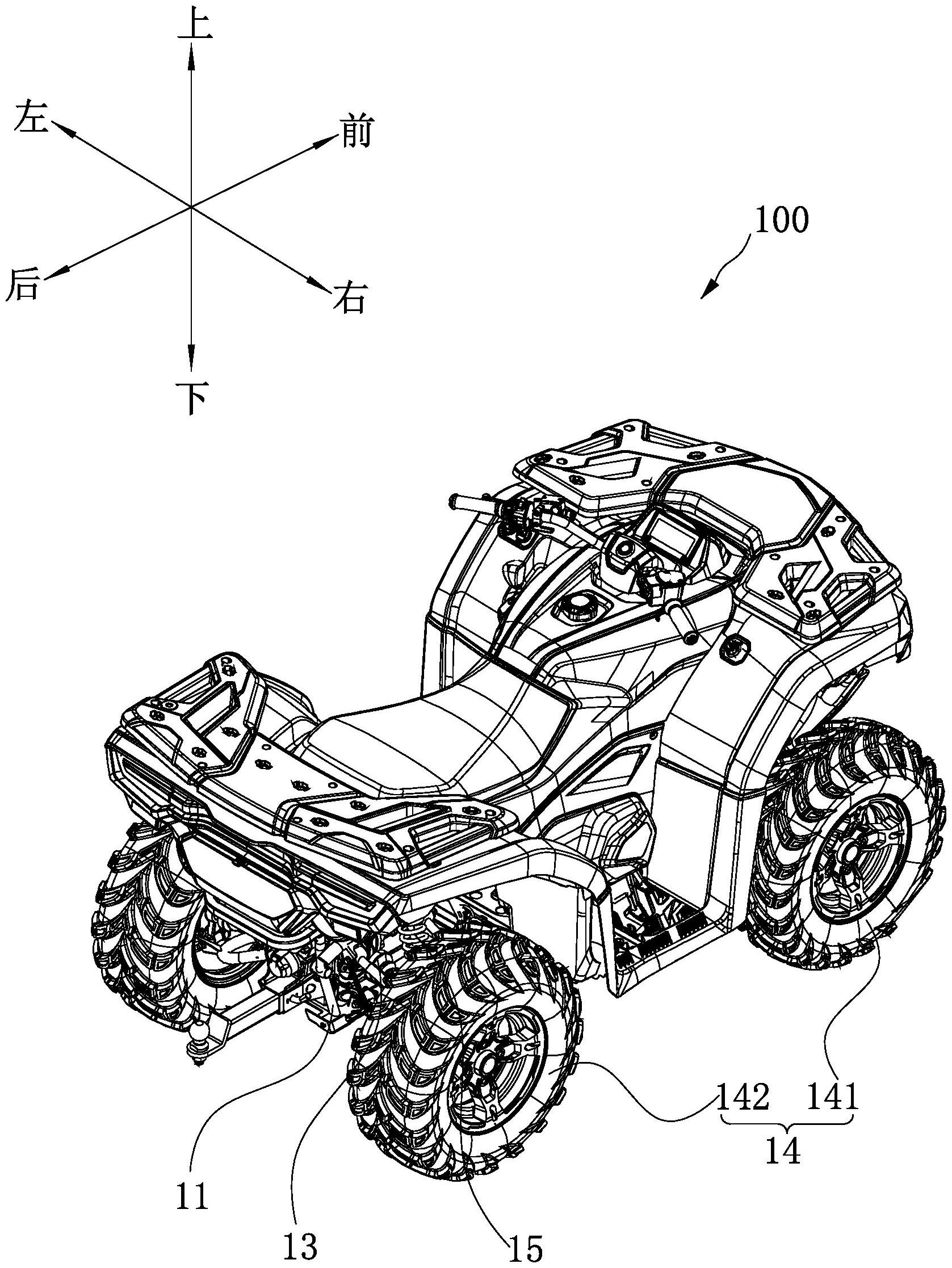 本实用新型公开了一种全地形车,该全地形车包括车架、发动机、传动组件和行走组件。发动机由车架支撑并包括外壳体和设置于外壳体内的冷却水套。传动组件由车架支撑并传动连接至发动机。行走组件设置于车架下侧并传动连接至传动组件。外壳体上形成有连通冷却水套和外界的排气口。发动机还包括设置于排气口中的紧固件,紧固件与排气口连接,紧固件上设置有排气槽,紧固件包括密封状态和排气状态,当紧固件处于密封状态时,排气口通过紧固件与外界隔离,当紧固件处于所述排气状态,排气槽连通排气口和外界。通过上述设置,可以提高发动机的冷却效率。