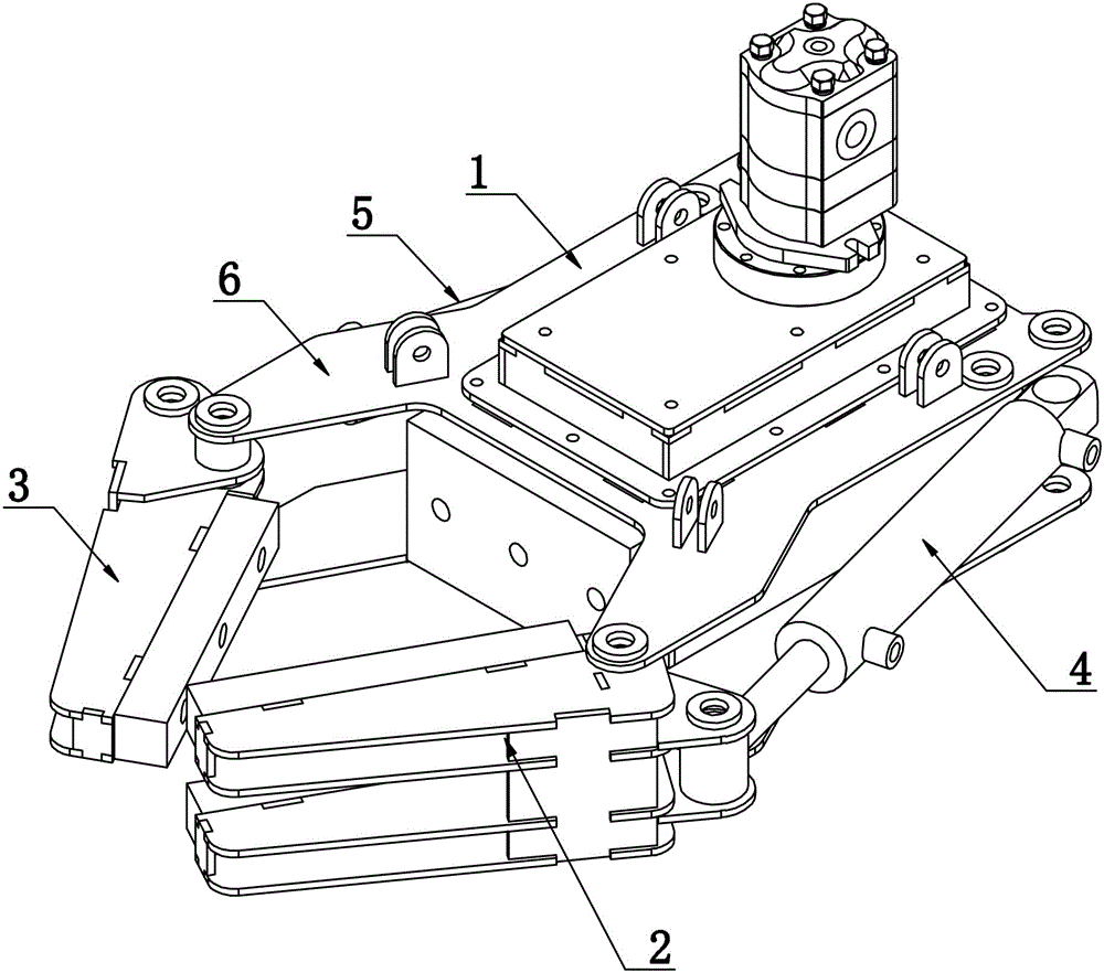 本实用新型涉及一种抱夹机构,包括壳体、第一夹臂、第二夹臂、第一伸缩机构和第二伸缩机构,壳体前端两侧均设置有向外侧伸出的固定臂,第一夹臂和第二夹臂中部分别于两个固定臂铰接,第一伸缩机构和第二伸缩机构的固定端分别铰接于壳体后端两侧,第一伸缩机构和第二伸缩机构的伸缩端分别铰接于第一夹臂和第二夹臂的后端,第一夹臂包括横向设置的第一臂体和第二臂体,第一臂体与第二臂体纵向平行间隔设置,第二夹臂包括第三臂体,第三臂体横向设置于第一臂体和第二臂体之间的空间内。本实用新型的目的在于解决或至少减轻现有晃树装置捆绑效率低且易损害果树的问题,提供一种抱夹机构具有该机构的晃树装置。