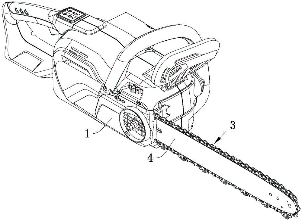 本实用新型涉及一种可调节链锯,包括壳体、电机、锯链、导板、齿轮箱以及安装于壳体内的调节组件,所述调节组件包括旋转杆、调节杆、定位板、传动齿轮以及定位杆,其特征在于:所述壳体的侧壁开设有供调节杆以及定位杆安装的安装凹槽,所述安装凹槽内设置有放置板,所述放置板上开设有供调节杆卡入的卡接开口,所述定位板盖合于所述安装凹槽的侧壁。本实用新型具有能够对链锯上的锯链与导板之间的张紧程度进行调节,提升了链锯的使用寿命的效果。