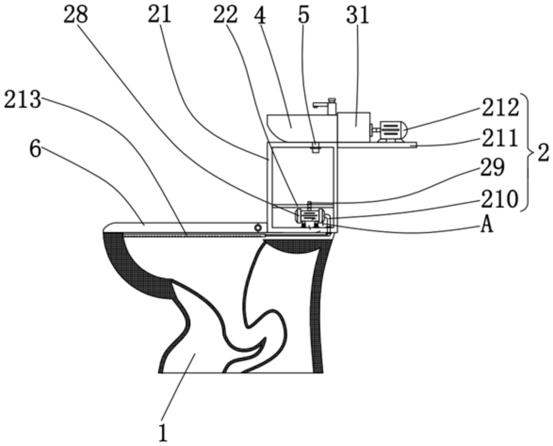 本实用新型提供一种节水型马桶,包括坐便器;高压清理装置,所述高压清理装置固定连接于坐便器的顶部;伸缩装置,所述伸缩装置设置于坐便器的顶部,所述伸缩装置包括U型件,所述U型件设置于坐便器的顶部,所述U型件内壁的背面设置有齿牙,所述U型件的内部设置有弯件,所述弯件的底部设置有螺纹杆,所述螺纹杆的左侧贯穿U型件和弯件且延伸至弯件的外部,所述螺纹杆与U型件转动连接。本实用新型提供一种节水型马桶,本装置可以节约在冲洗马桶所用的水,并且可以将洗手用完的水进行回收再利用,且在水泵的辅助作用下,水的冲击力加大,对坐便器内的污渍可以进行有效的清洁,大大减少了水的消耗程度。