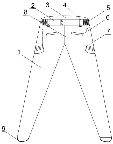 本实用新型提供了一种具有防撞功能的骑行裤,它包括裤子本体和裤腰,所述裤腰缝纫连接在裤子本体上,所述裤腰内部缝纫连接有裤腰橡筋,裤腰处缝纫连接有多个裤串带;所述裤子本体上端中部设置有裤子门襟拉链,裤子本体上端左右两侧均设置有裤子插袋;所述裤子本体上还设有防护垫和耐磨层,所述防护垫为可拆卸结构,包含护膝防护垫和护髋防护垫,耐磨层设置于裤子本体的臀部区和裤子本体左右两侧的髋关节区。本实用新型所述具有防撞功能的骑行裤穿戴方便、防护垫可方便拆卸与安装、穿着时尚轻薄美观、行动灵活、骑行安全,能够对人体关键部位很好的防护,因此具有广泛的适用范围。