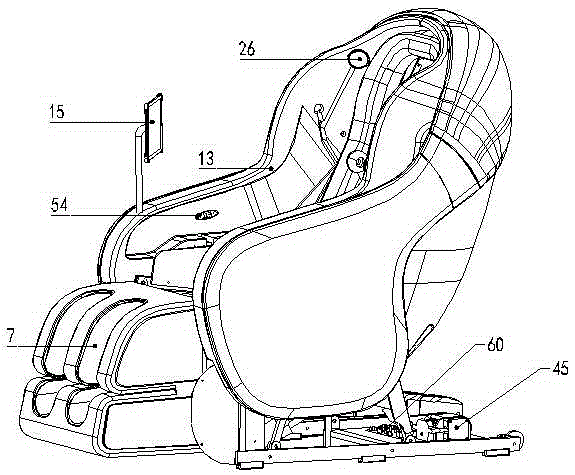 本实用新型公开了一种具有生物电阻抗检测功能的按摩椅,包括座椅、脚机、左侧扶手和右侧扶手;还包括显示平台、电极发射装置、电极接收装置和PCBA主板,显示平台设置在左侧扶手上,PCBA主板内置有信息处理模块和数据存储装置,电极发射装置发出的生物电流流经人体并被电极接收装置接受,电极接收装置获取生物电阻抗数据并发送给PCBA主板的信息处理模块,信息处理模块对生物电阻抗数据进行分析处理并将处理结果发送给数据存储装置和显示平台;该具有生物电阻抗检测功能的按摩椅同时具备了按摩功能和生物电阻抗检测功能,满足人们在使用按摩椅实施按摩的过程中,检测出自身的身体成分含量数据以及心、脑、血管以及循环系统功能。