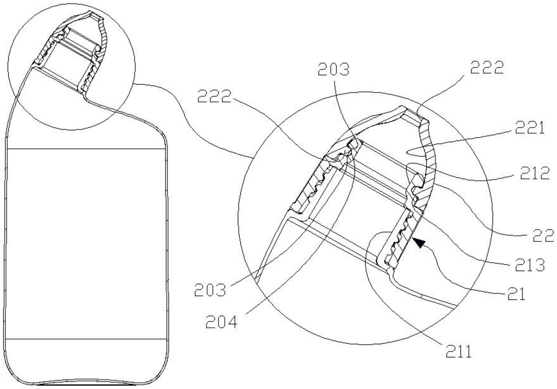 本实用新型公开了一种防呛水的手动洗鼻瓶,包括洗鼻瓶瓶体及喷头单元,洗鼻瓶瓶体在其顶端形成有供喷头单元安装的瓶嘴,喷头单元包括喷头管及喷头盖,喷头管的一端为连接端,另一端为出液端,连接端形成有与瓶嘴对应安装的安装腔,出液端形成有与安装腔连通的出液道;出液端在其外壁的中部凹设有安装槽,安装槽在其与槽口对应的槽面的上部与下部各形成有一压面段以及在两段压面段之间凹设有通液槽;喷头盖形成有与出液端对应安装的装配腔以及在其顶端开设有连通装配腔的喷口,装配腔的下部腔壁上对应安装槽凸设有凸边。本实用新型能够水流沿通液间隙对外排出,防止水流大量涌入鼻腔,起到防呛水的效果。