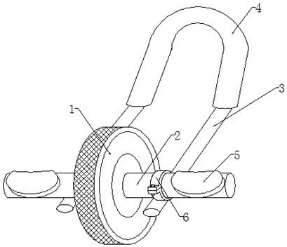 本实用新型属于健身器械技术领域,具体涉及一种增强腹部收缩的腹肌轮。该增强腹部收缩的腹肌轮,包括腹肌轮、手柄和辅助手柄,所述辅助手柄与腹肌轮两侧的手柄通过螺纹栓和连接扣连接,所述腹肌轮两侧对称设有支撑垫,辅助手柄上设有防滑套。其有益效果是:本实用新型一种增强腹部收缩的腹肌轮结构简单,使用方便,通过辅助手柄和支撑垫的结合,能够使人们在使用时更容易收紧腹部核心力量,达到稳定身体,增强腹部收缩力的作用,提高训练效果,减少对身体造成的伤害,给人们腹部训练带来了方便。