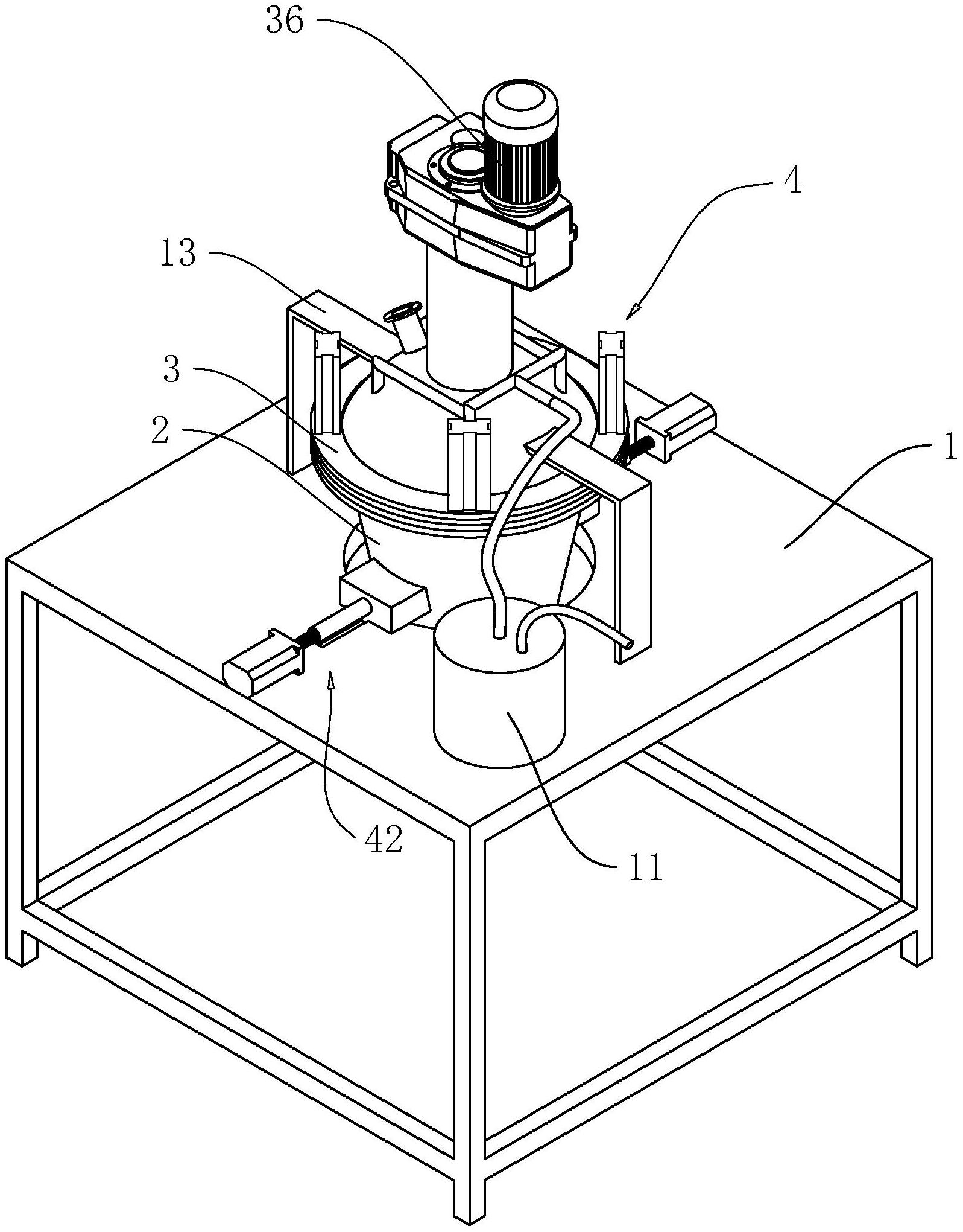 本申请涉及一种筒身可拆式单锥螺旋型真空干燥机,涉及干燥设备的技术领域,包括支架、筒盖以及筒身,所述筒盖上固定连接有加热棒,所述筒盖与支架固定连接,所述筒身与筒盖可拆卸连接,所述筒盖上转动连接有搅拌叶,所述筒盖上设有用于驱动筒身与筒盖分离的驱动机构。筒身与筒盖可拆卸连接,驱动机构驱动筒身与筒盖分离,进而使得搅拌叶从筒身中暴露出来,便于清洗,提高搅拌叶的清洗效率,操作方便。
