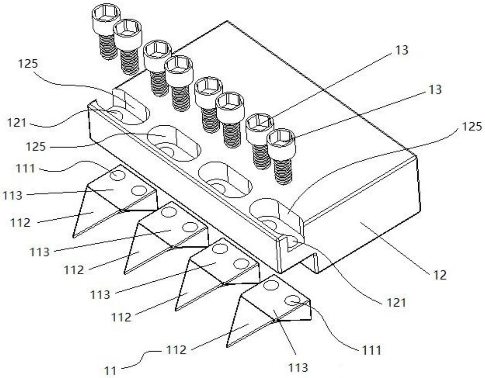 本实用新型提供了一种分极耳装置,包括:端子,端子包括导向面;压块,压块的底部具有工作面,压块与端子连接,导向面将电极组件上外露的极耳束中的多个极耳分开,工作面对分开的极耳进行压整。应用本实用新型的技术方案,端子包括导向面,压块的底部具有工作面,压块与端子连接,导向面将电极组件上外露的极耳束中的多个极耳分开并对极耳进行翻折,工作面对分开的极耳进行压整,从而实现了极耳束的分流,提高了加工速率,解决了现有技术中需要分别对每个电极组件的正负极极耳进行分折压平、操作繁琐、用时较长的问题。