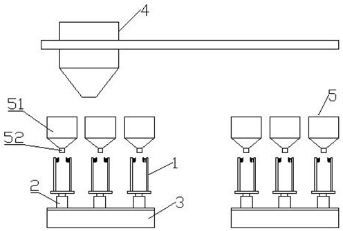 本实用新型公开了一种枕芯填充装置,包括枕芯夹持机构、升降机构、旋转平台、料仓和灌芯机构;料仓的下方设置灌芯机构;旋转平台设置于所述灌芯机构的下方;所述的旋转平台上设置有多个枕芯夹持机构;旋转平台旋转依次将不同位置的枕芯夹持机构旋转至灌芯机构的正下方;所述的枕芯夹持机构通过升降机构安装于所述的回转平上。本实用新型通过设置多个灌芯仓,灌芯仓内设置不同物料,通过旋转平台的旋转,将枕芯旋转至不同灌芯仓下方,填充不同物料,提高填充效率。利用夹持机构夹持枕芯,也降低工人的劳动强度。
