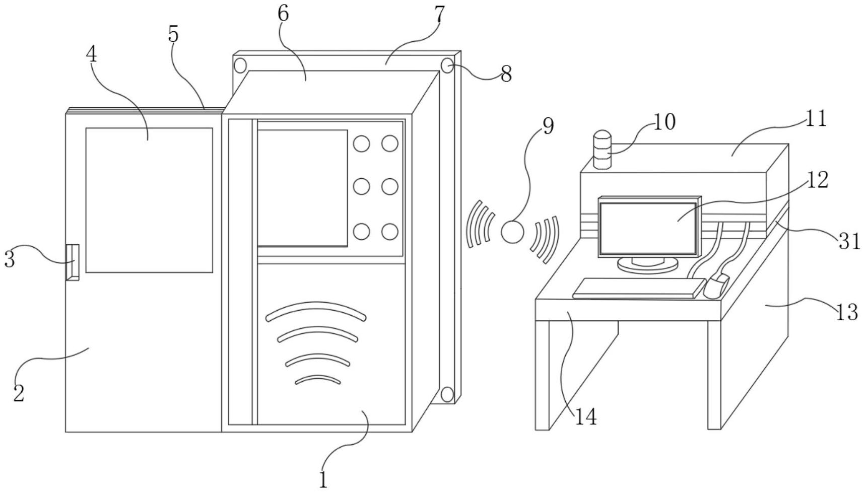 本实用新型公开了一种电梯预警语音安抚系统,包括视频语音设备、无线传输器、安装箱体、控制台与控制座,所述视频语音设备的前端设置有显示器、按键与音响,所述视频语音设备的内部安装有电源箱,所述视频语音设备的外侧安装有绝缘防护垫与防护框,所述控制台,所述控制台连接监控控制端,所述监控控制端连接电性线。本实用新型所述的一种电梯预警语音安抚系统,设有视频语音设备、控制台与设备防护安装机构,能够方便在电梯出现故障的时候快速连接电梯与服务人员之间的联系,可以视频与语音,便于对电梯乘坐人员的情绪进行安抚,便于服务人员进行控制,更加快速,还可以方便对设备进行防护,具有防尘与防外力碰撞的作用。