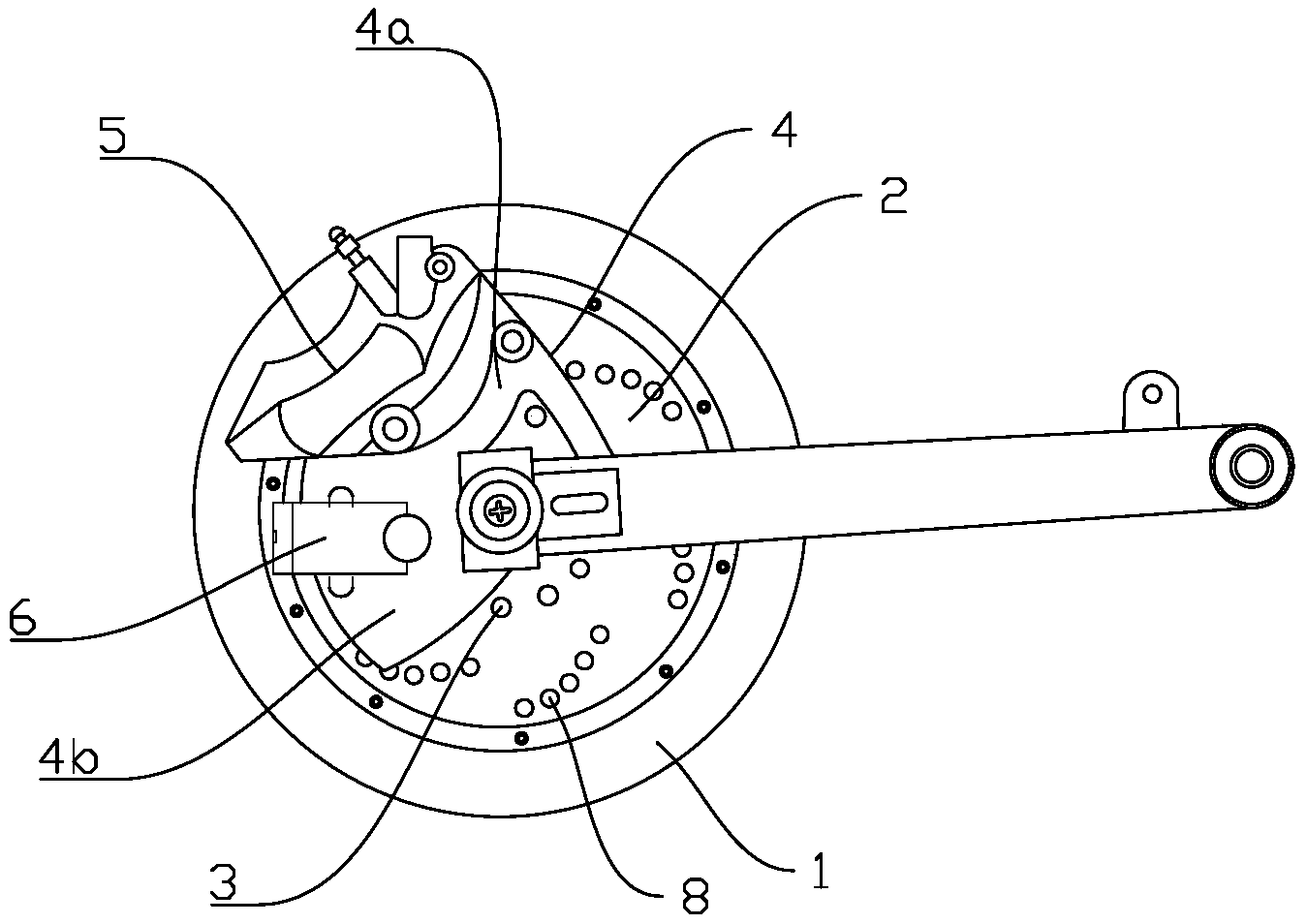 本实用新型电动车的技术领域,涉及一种电动车的防盗结构,所述电动车轮毂的外侧设置有刹车盘,刹车盘上设置有贯穿刹车盘的锁孔,刹车盘的外侧设置有刹车支架,刹车支架由刹车器安装部和锁具安装部所组成,所述刹车器安装部的外侧固定有刹车器,所述锁具安装部的外侧固定有锁具,锁具的锁舌可轴向穿过刹车支架上的通孔插入锁孔中。本实用新型提供的电动车的防盗结构,上锁简单,设置隐蔽,安全性能高。