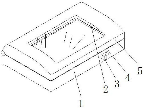 本实用新型公开了一种智能电动车用触屏感应锁防干扰装置,涉及电动车技术领域。该智能电动车用触屏感应锁防干扰装置,包括电动车触屏,所述电动车触屏的表面设置有防护框,防护框的顶部转动连接有防护盖,防护盖的底部开设有两个滑槽,滑槽的内部设置有斜面,防护盖的底部固定连接有固定板,固定板的右侧开设有固定槽,防护框的顶部开设有定位槽,防护框的内部开设有与定位槽内部连通的动力槽。该智能电动车用触屏感应锁防干扰装置,通过实现对防护盖的位置固定,使防护盖的固定与固定解除更加便捷,使用户可以更加方便的使用装置,同时使防护盖可以更加顺利的对电动车触屏进行防护。
