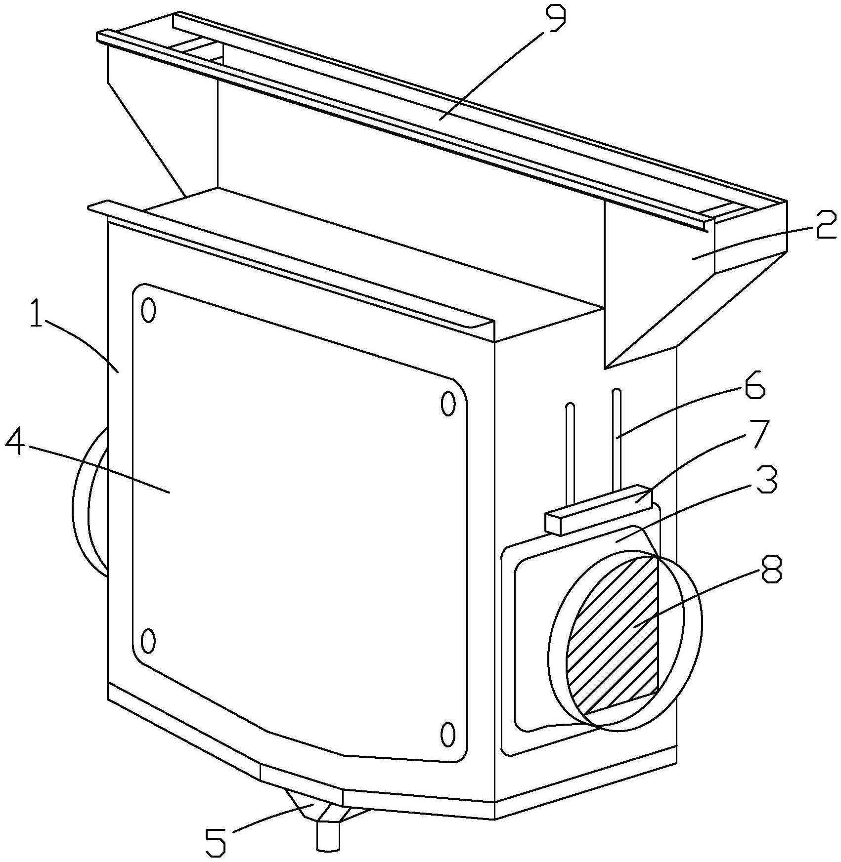 本实用新型公开了一种分体式集成灶风箱,包括箱体、集烟箱和风机箱,集烟箱设于箱体的顶面后侧,集烟箱上设置有进风口,风机箱连接集烟箱,风机箱通过支撑机构固定连接在箱体内,箱体的左右两侧对称设置有出风罩,出风罩通过排烟管连接风机箱,排烟管上靠近出风罩的一侧设置有挡风机构。本实用新型不仅便于风机箱的安装拆卸,提高风机箱安装的稳定性和可靠性,而且可以提高风机箱的安装精度。