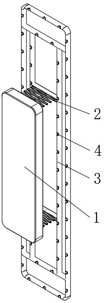 本实用新型申请公开了一种定位式晾衣架,其特征在于:包括主机和晾架,所述主机与晾架之间通过若干剪刀架连接,所述晾架上均布有若干晾挂模块,所述晾挂模块包括机壳和压弹组件,所述机壳安装在晾架上,所述压弹组件安装在机壳内,所述压弹组件包括弹簧和顶板,所述顶板的弹簧的一端固定连接,弹簧的另一端与机壳固定连接且弹簧位于机壳内;本定位式晾衣架通过各晾挂模块能够在晾架上均匀地晾挂衣物,通过环状的风道能够对衣物进行风干,使得晾架能够晾挂更多的衣物的同时保证衣物的晾干效率,同时晾挂模块能够将晾架封闭住,有效避免灰尘进入至晾架内,同时保证晾架的美观,使得本晾衣杆能够晾挂更多的衣物的同时保证衣物的晾干效率。