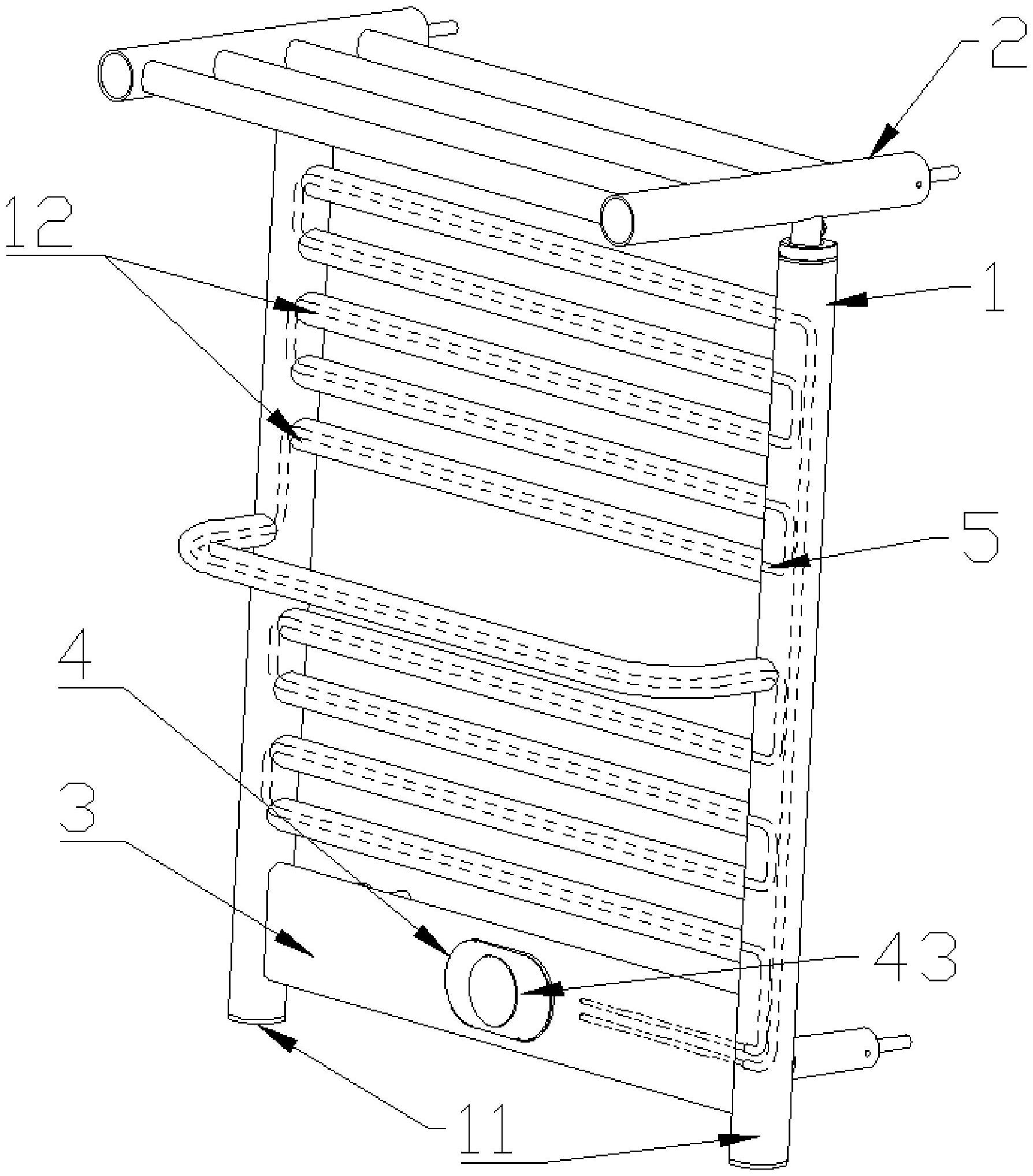 本实用新型涉及一种电热毛巾架,其包括架体以及加热装置;所述架体包括主体部;所述主体部内形成一密闭腔体,所述密闭腔体内填充有导热介质;所述加热装置包括电控组件以及发热管,所述发热管与所述电控组件电性连接,所述发热管设置于所述密闭腔体内。所述导热介质能够均匀且高效地将所述发热管工作发出的热量传递至所述主体部,使其整体均匀发热,在悬挂湿毛巾后其发出的热量能够对其均匀进行加热并使毛巾中含有的水分蒸发,实现烘干,烘干均匀且充分,不会出现毛巾局部区域过度烘干而另一区域未干透的情况,确保用户的使用体验,并能避免由于加热不均匀而造成毛巾损坏的问题,且更节约能源,使用成本更低。