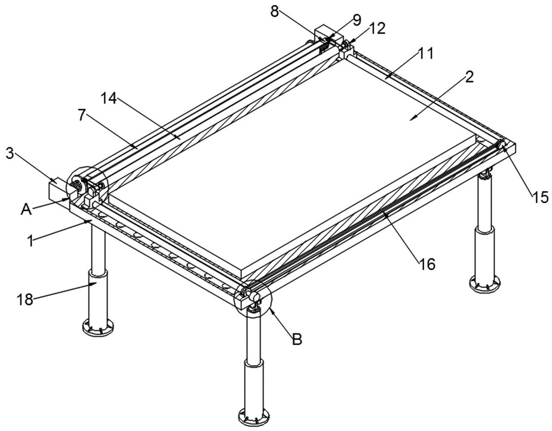 本实用新型公开了一种防灰防雨型光伏系统,具体涉及光伏系统技术领域,包括安装架,所述安装架的内部固定安装有太阳能板,所述安装架的后侧两端均固定安装有第一连接块,所述第一连接块的一侧固定安装有第一连接杆,所述第一连接杆的外端套有尺簧,两个所述尺簧之间通过轴承活动连接有转盘,所述尺簧的一端与转盘固定连接。本实用新型通过液压伸缩杆对安装架进行固定调节,然后将太阳能板安装在安装架内部,在夜间或阴雨天气不使用时,在电机的工作下会带动防护布移动,防护布缠绕在转盘的外端,因此转盘会转动,从而使第一连接杆外端的尺簧发生形变,在防护布移动到安装架底端时,防护布会铺设在安装架顶部,从而避免灰尘和雨水腐蚀光伏系统。