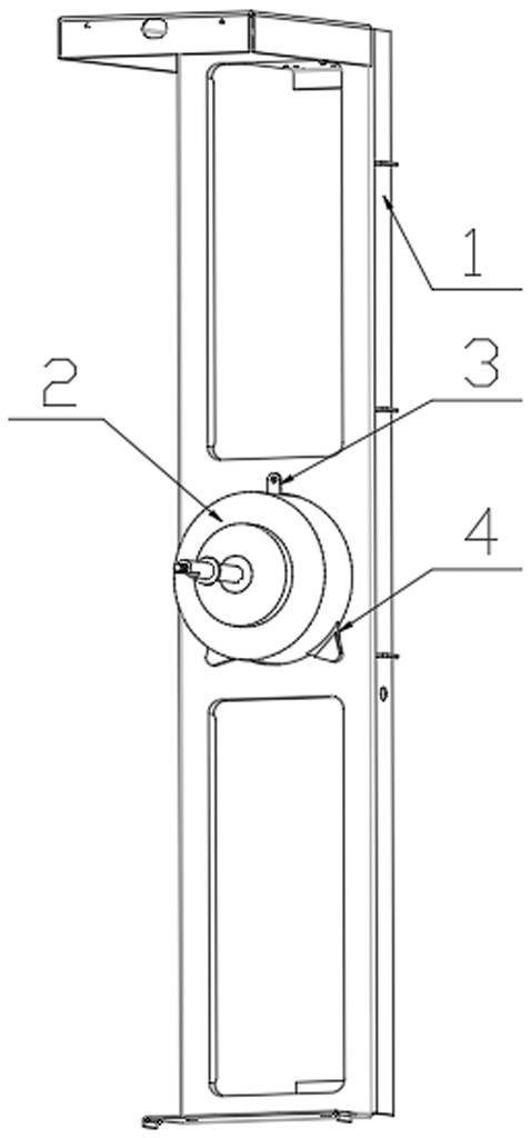 本实用新型公开了一种低温空气源热泵机组电机支架装配组件,具体涉及低温空气源热泵技术领域,包括电机支架和电机,所述电机与电机支架可拆卸连接,所述电机支架包括支架主体,所述电机顶部和底部分别设有上部安装脚和下部安装脚。本实用新型通过在支架主体上设置有避让孔,避让孔上方设有安装定位孔,安装孔和安装定位孔匹配连接,避让孔下方设有卡槽,电机上的下部安装脚与支架卡槽相互卡接,快速连接的卡接结构,实现电机装配的自定位并大幅减少电机使用的螺钉数量,可实现自动化生产线的电机自动化装配,大大提高组装电机支架部件的效率,从而提高低温空气源热泵机组装配效率。